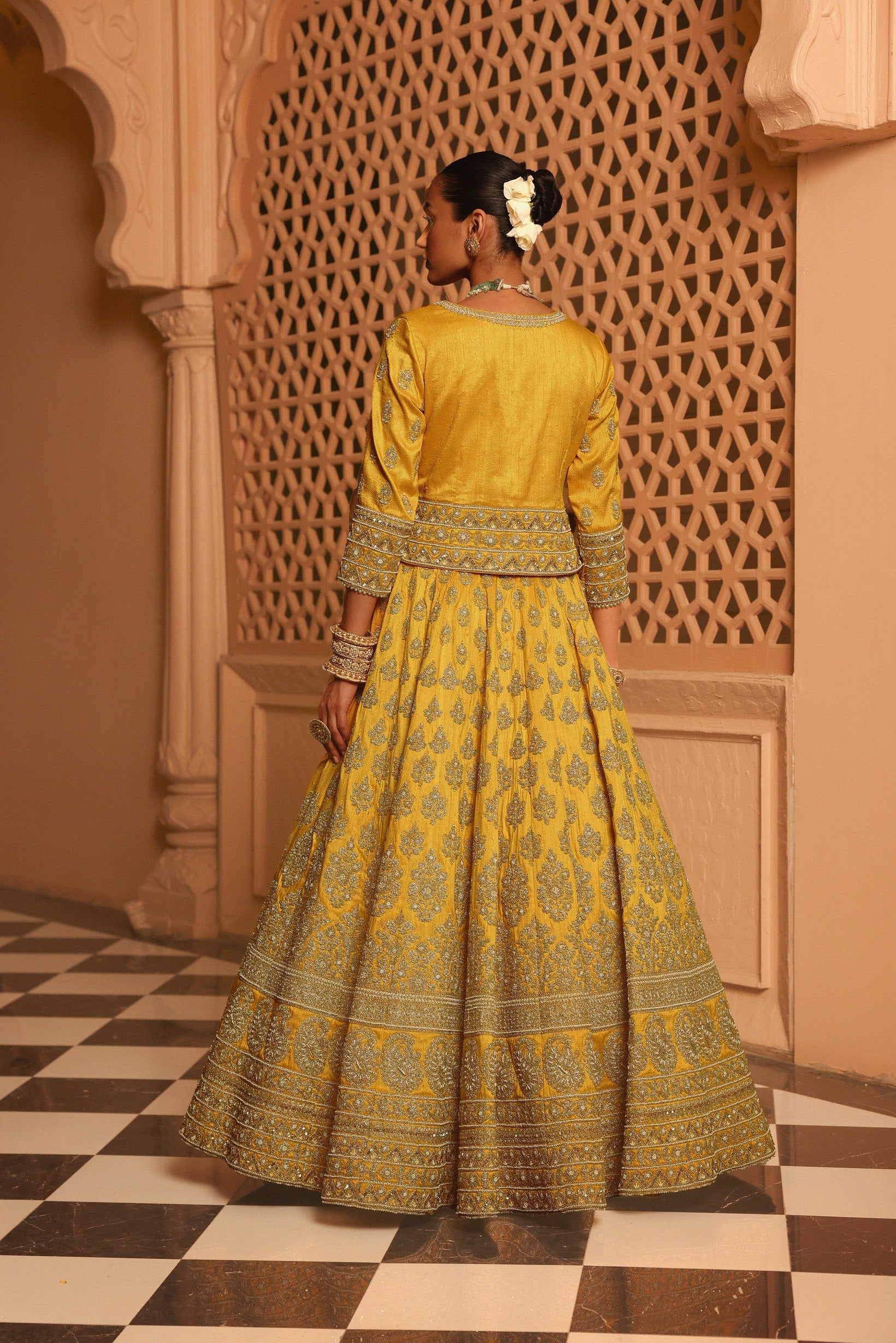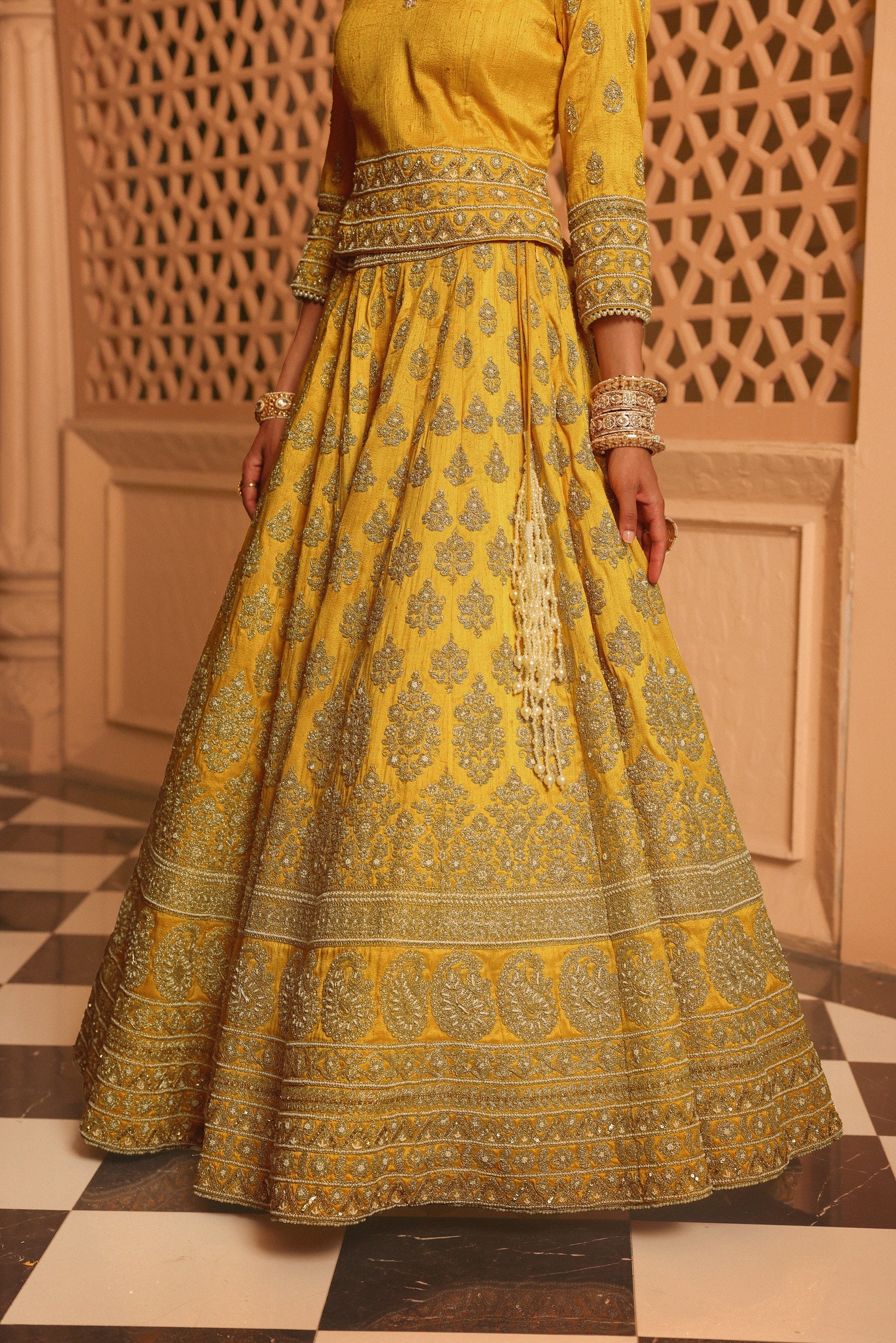 Noorali - mustard lehenga with choli and dupatta