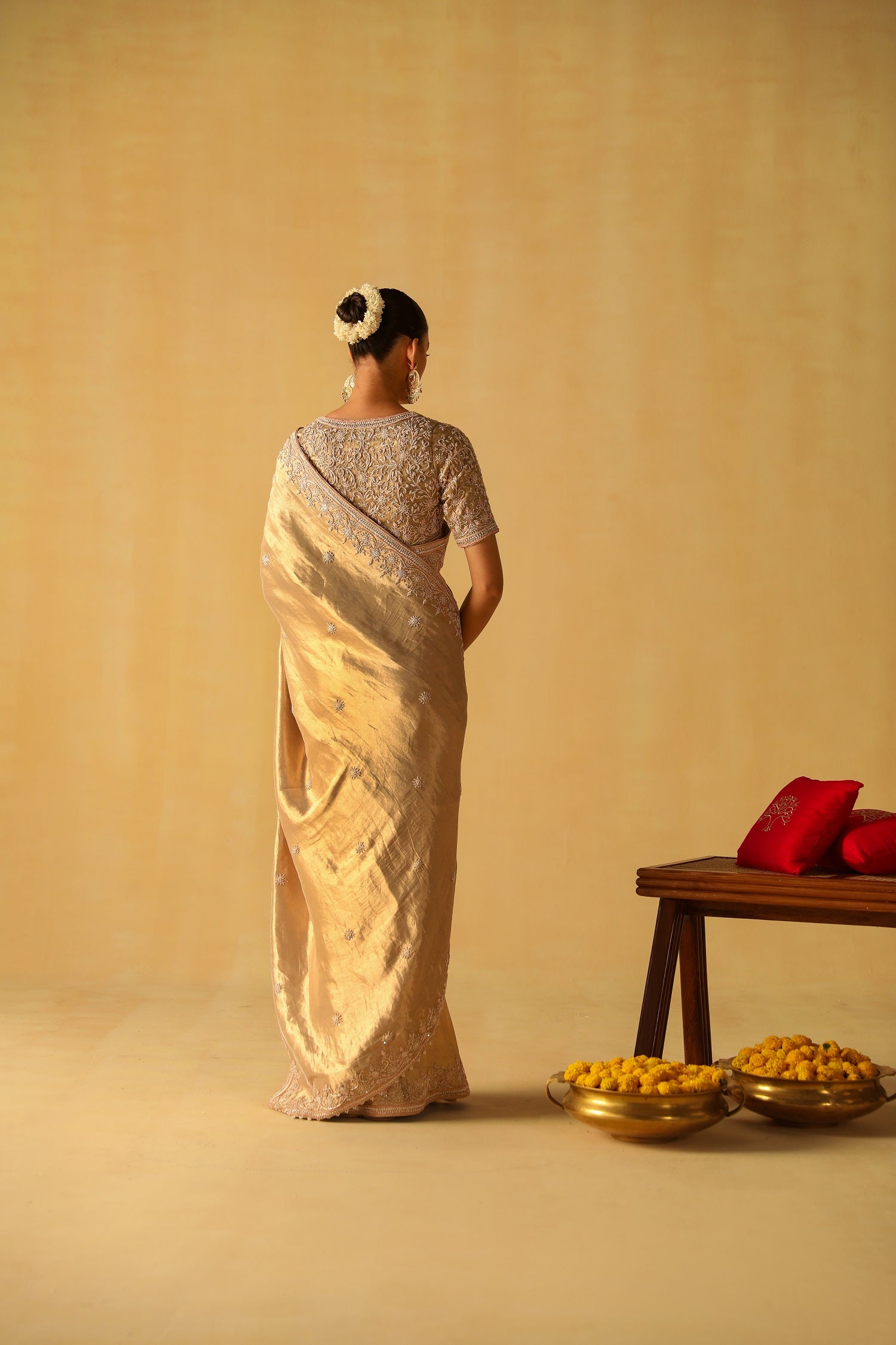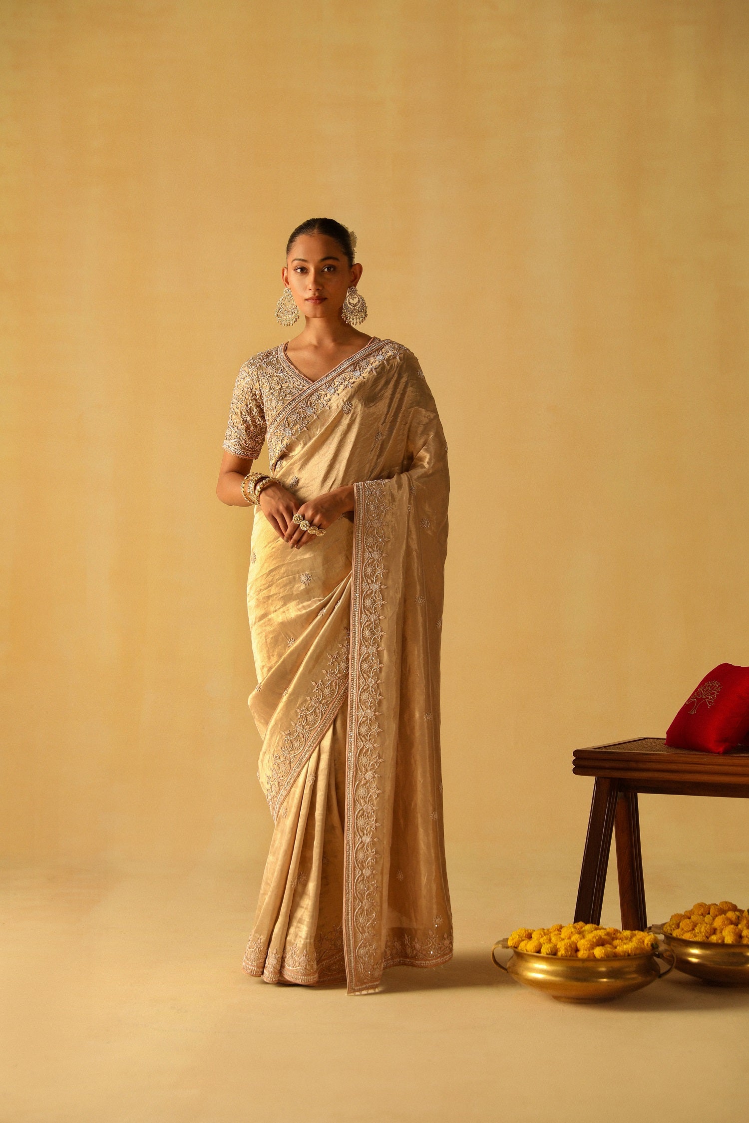 The Silk Tissue is especially hand woven for the collection using one of the most precious weavers in Benaras.