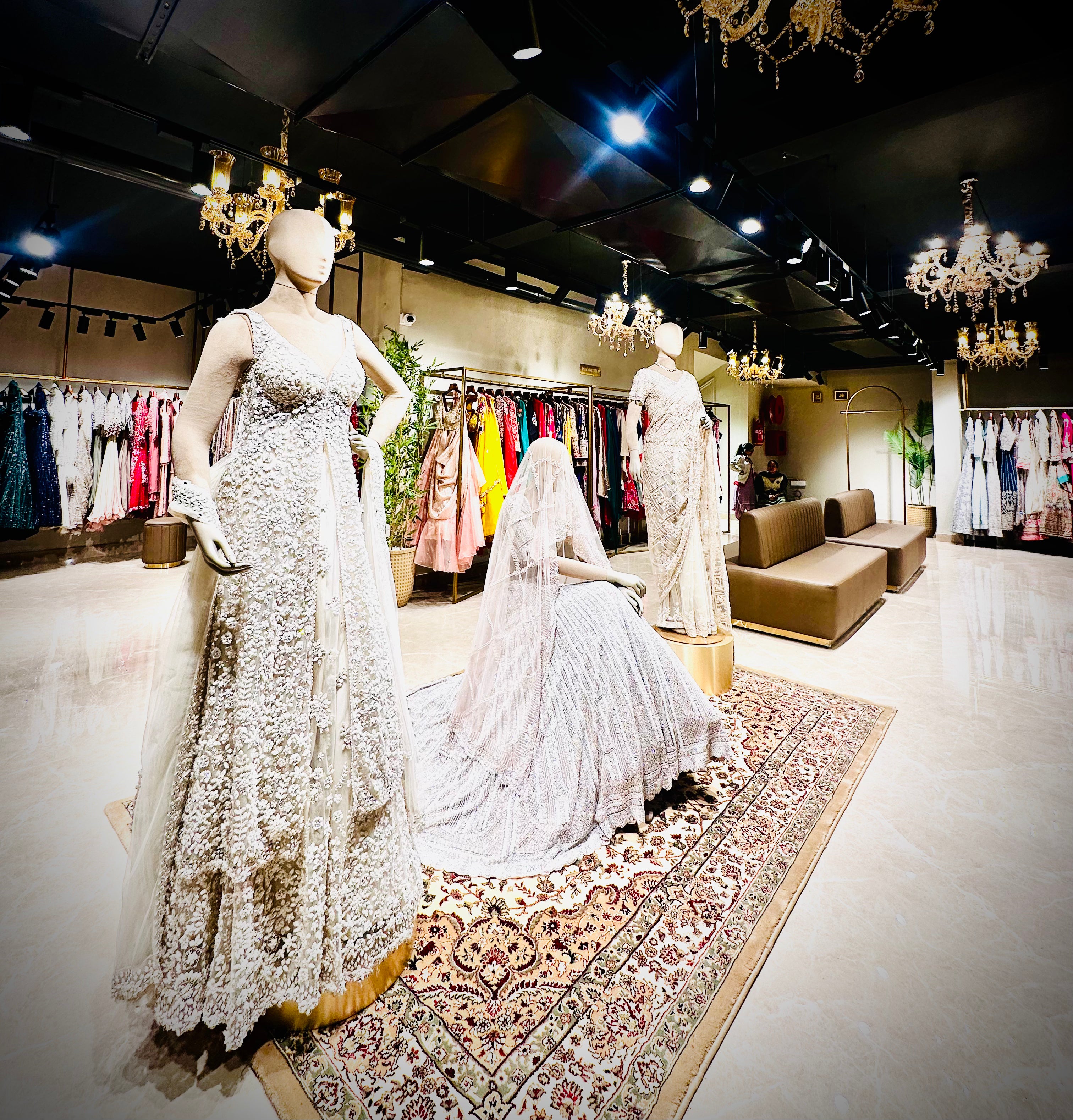 Discover an extensive range of bridal wear, pret wear, contemporary styles, western wear, accessories, jewelry, and footwear at Ganpatis. We showcase designs from renowned brands such as Mandira Wirk, Ayushi Maniar, Swatii Kapoor, SAISHA, Soup by Sougat Paul, Basanti Kapde & Koffee, RAR Studio, Emerald by Amitab, Shalkii Kothari, and more. We cater to all occasions for both men and women, including mehendi, cocktail parties, weddings, engagements/sangeets, resort wear, and ready-to-wear.
