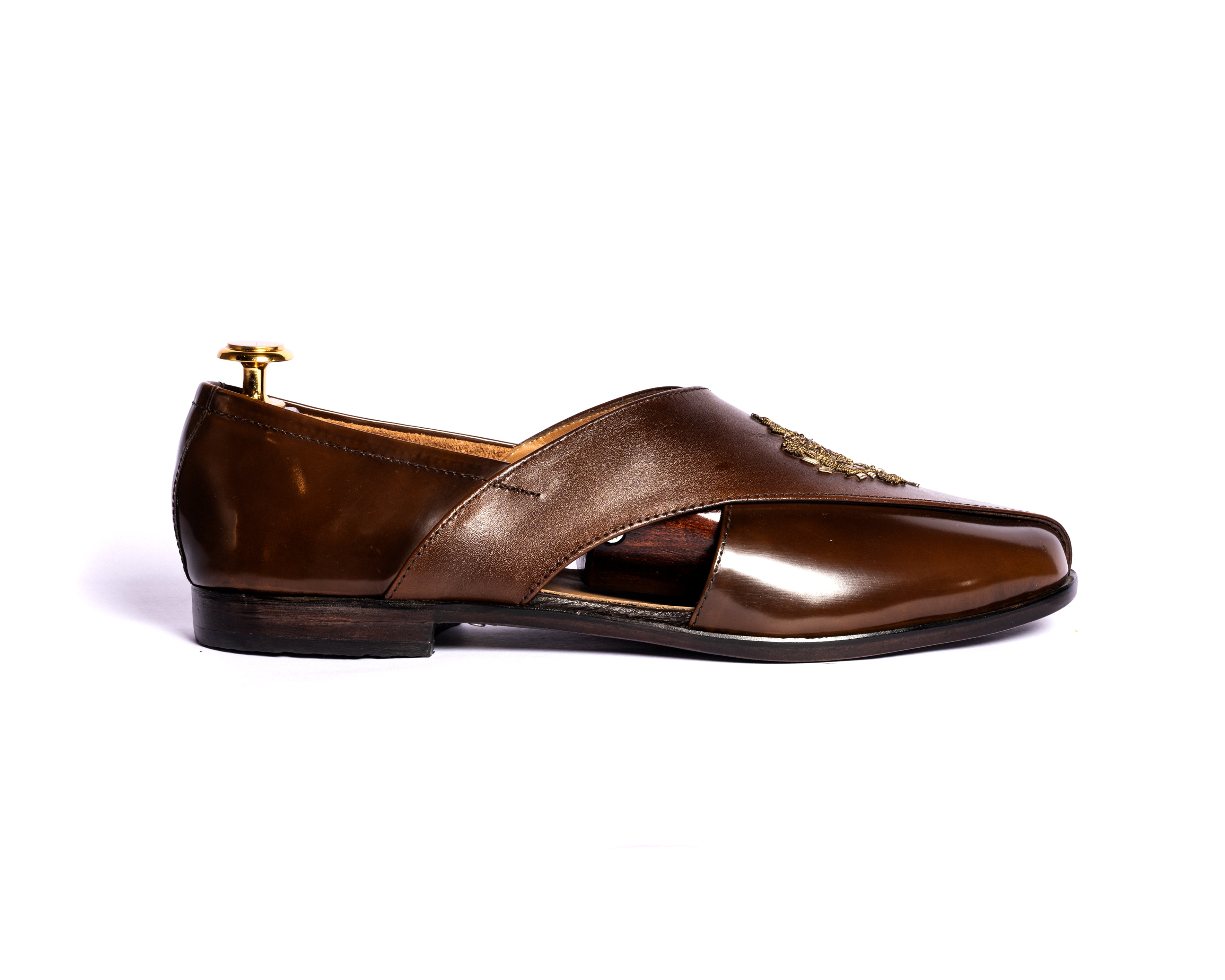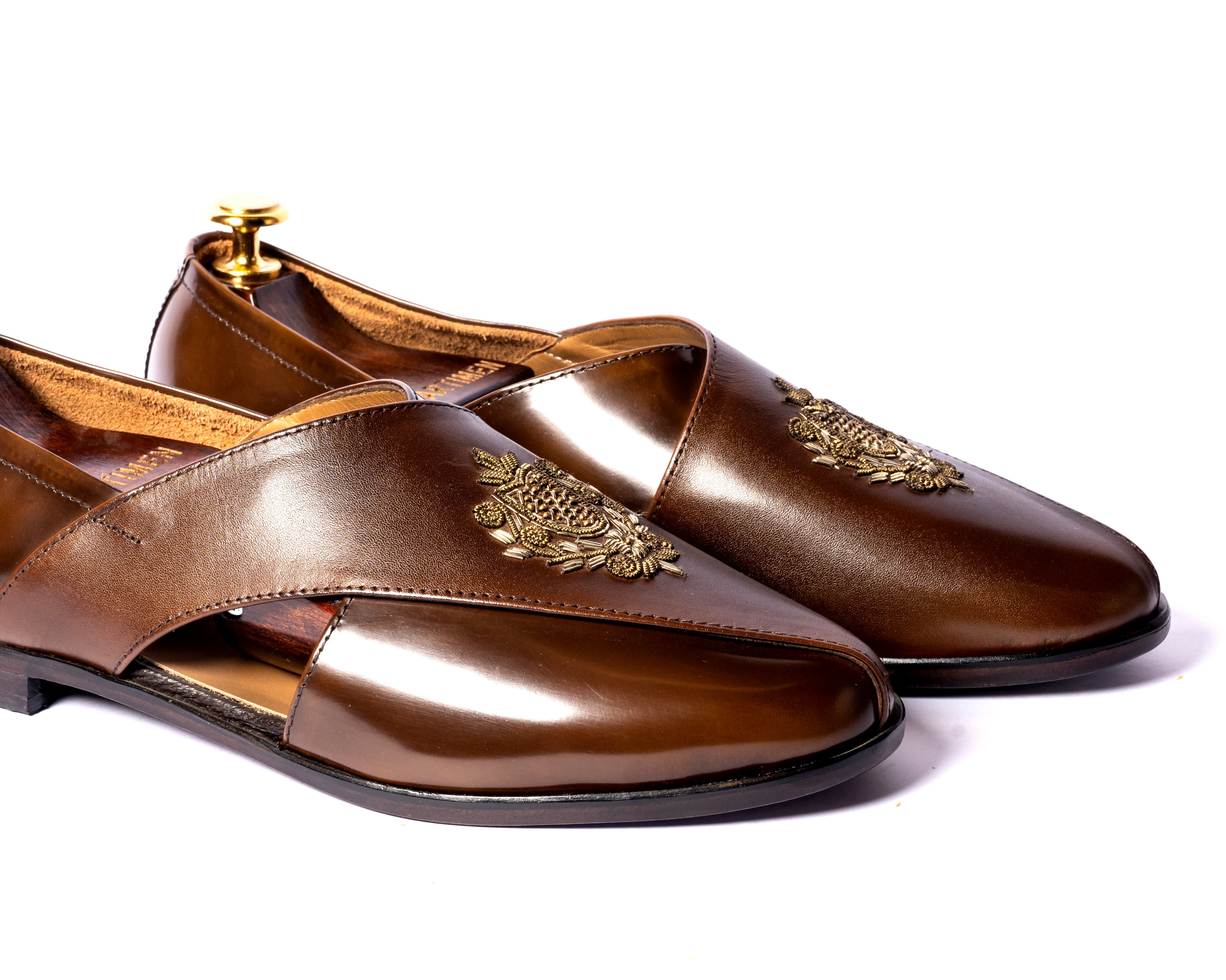 | Dabka Peshawari Peshawaris have been in style for the longest now. One can never go wrong with a pair of peshawaris. There was a time when these were made like sandals but now we have introduced these in a shoe form making it more comfortable and classy. To add to its royal feel, we have hand embroidery on the front to make it perfect for a more formal event. In pure leather totally handcrafted to fit your look. |