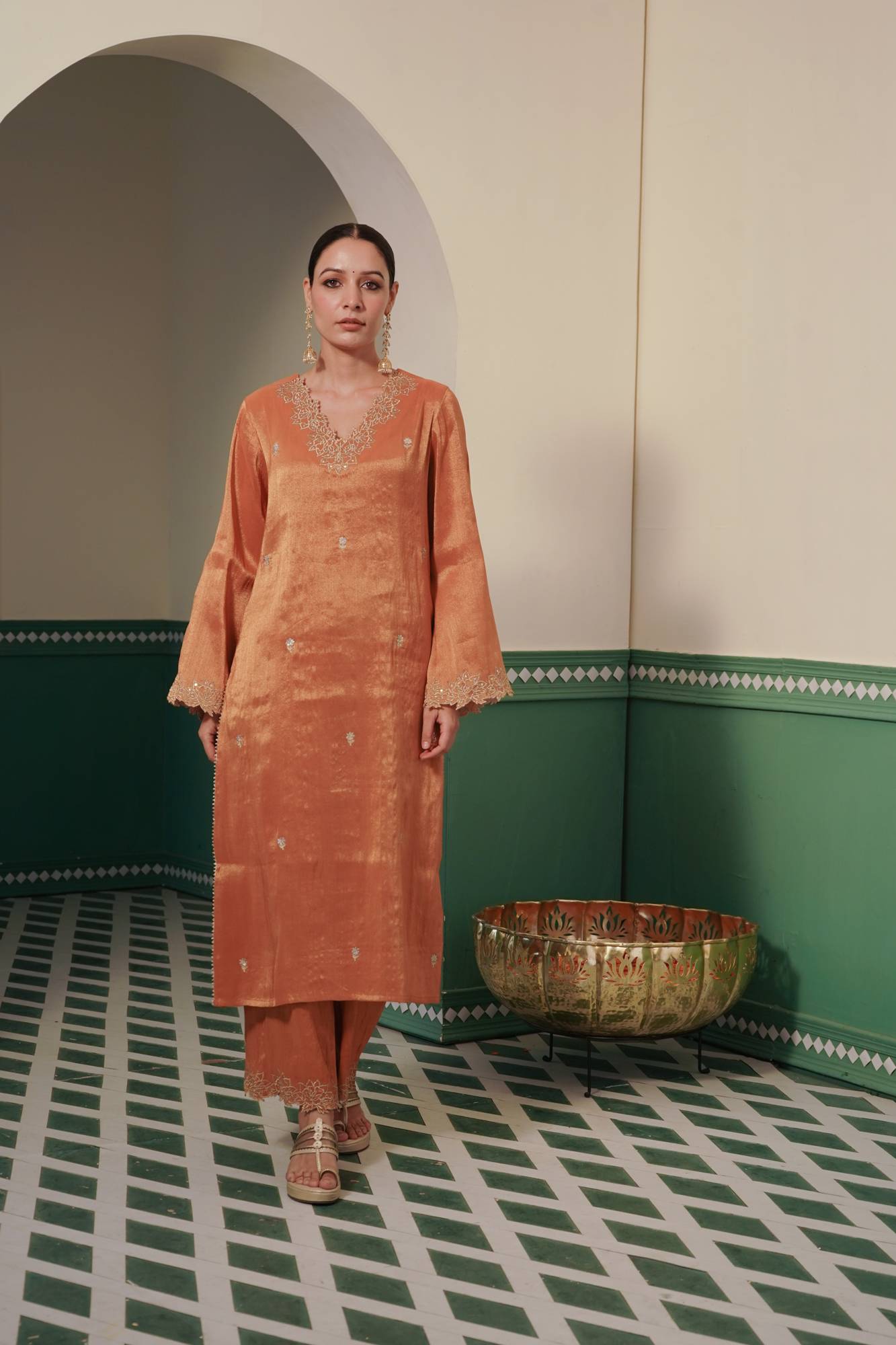 -Kurta in Amber Tissue Fabric with slits which adds movement.