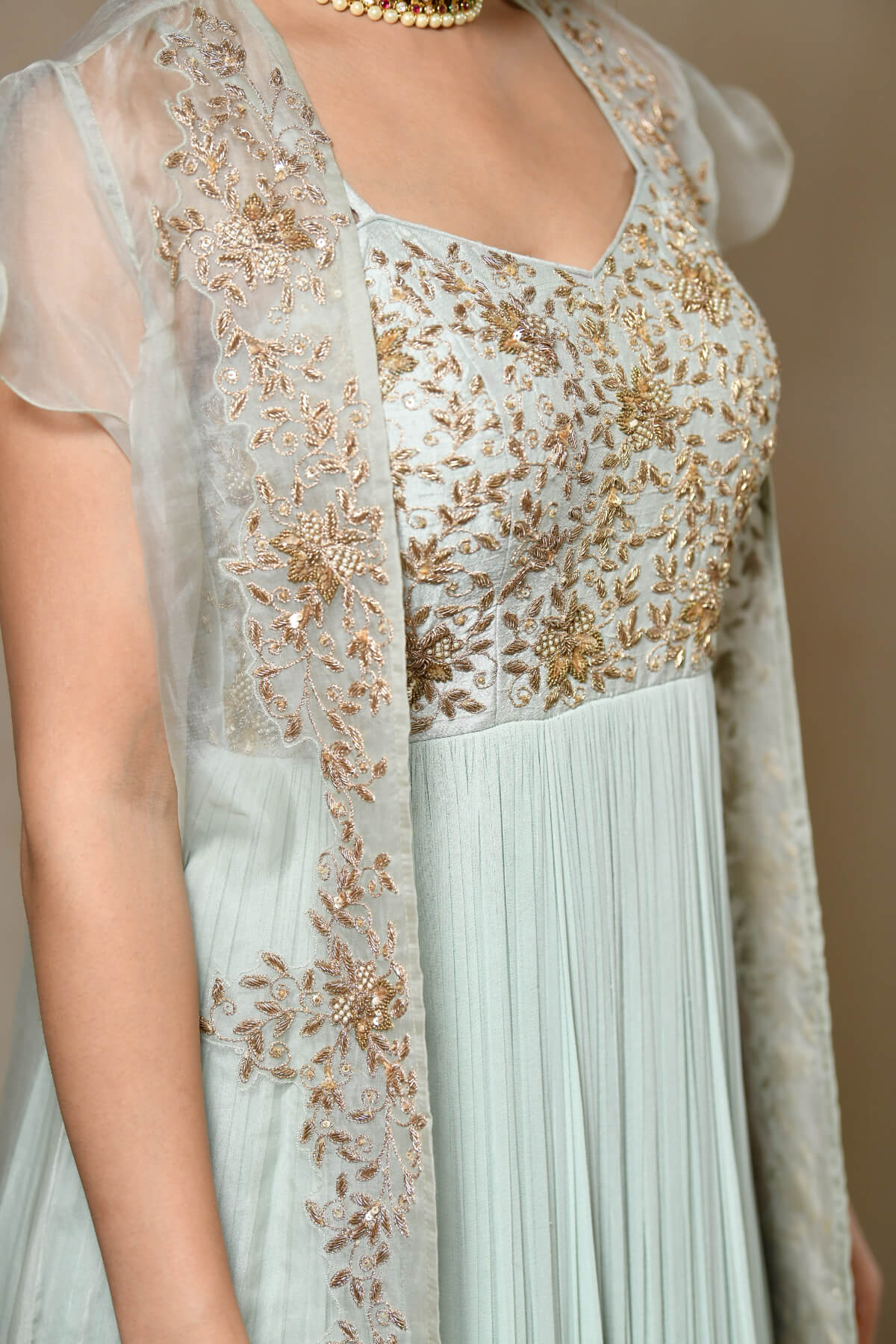 | Featuring Buster Lehenga With Organza Jacket, Dabka Dori Work On Blouse As Well As All Over Jacket. |