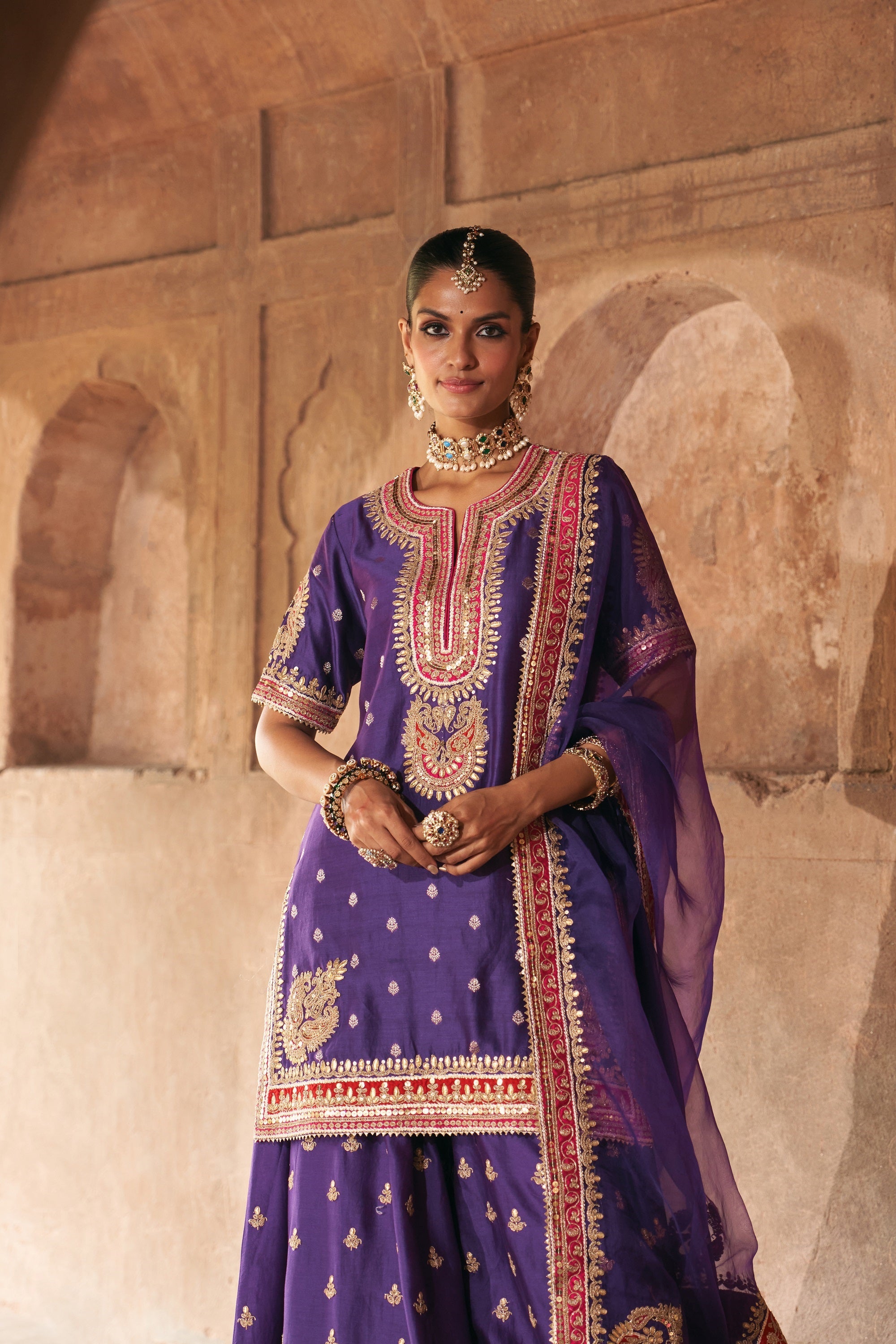 Areesha - deep purple short kurta with sharara and dupatta