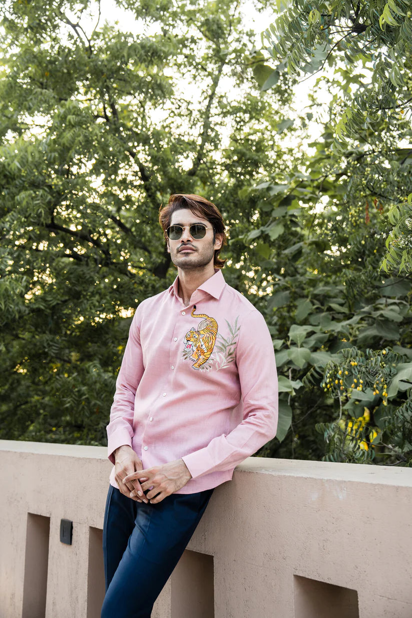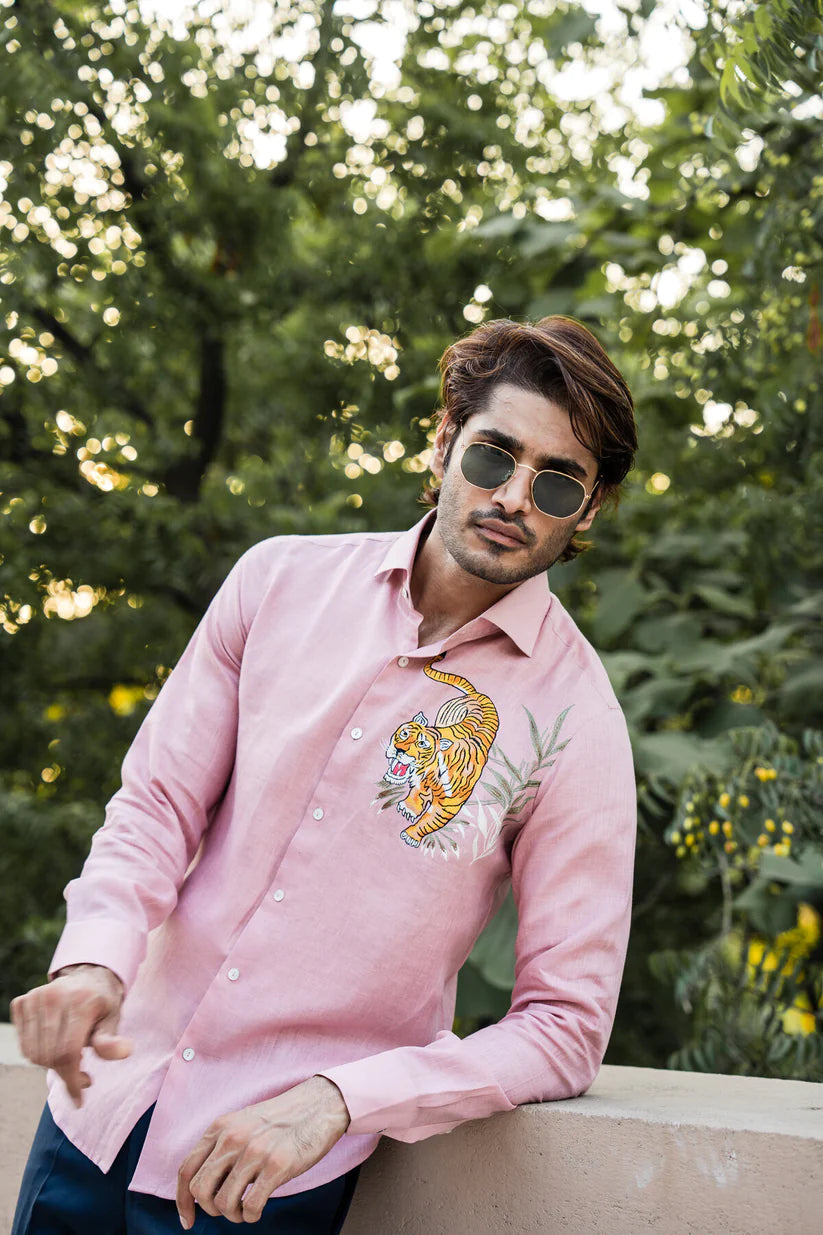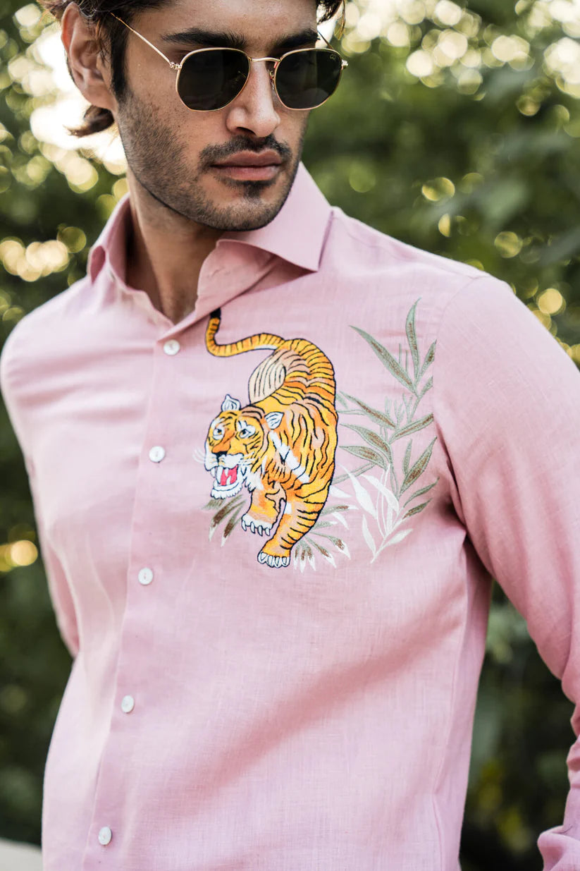 Channel the wild with the striking tiger embroidery, a symbol of strength and individuality. This shirt is more than fashion; it's an expression of your inner courage.Seamlessly blending urban chic with untamed energy, this shirt defies conventions. It's not just an outfit; it's a statement of fierce modernity
