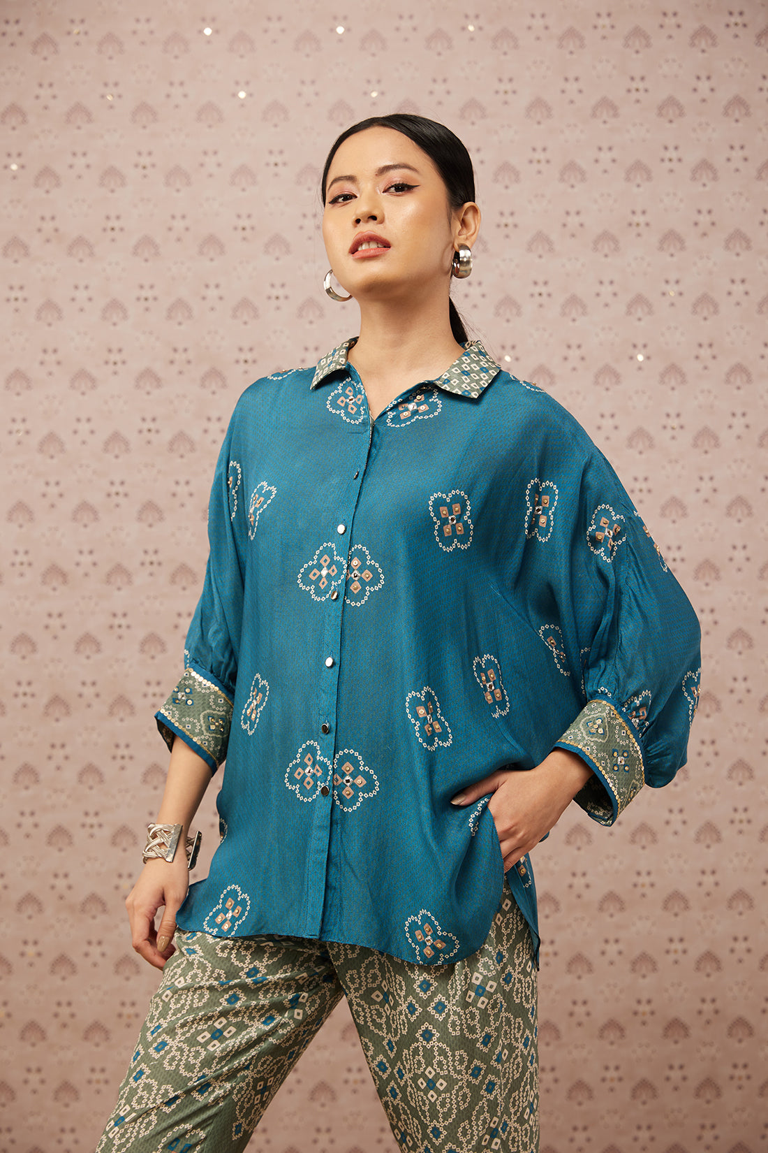 Featuring a teal cotton silk based Cor-ord set. It consists of Kurta & Bottom Pant.