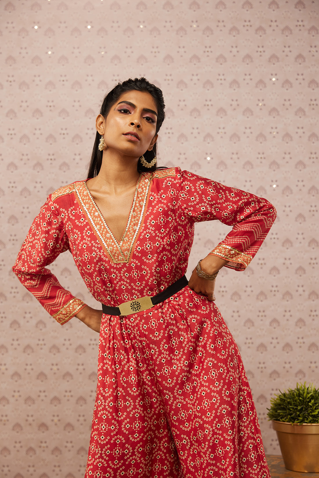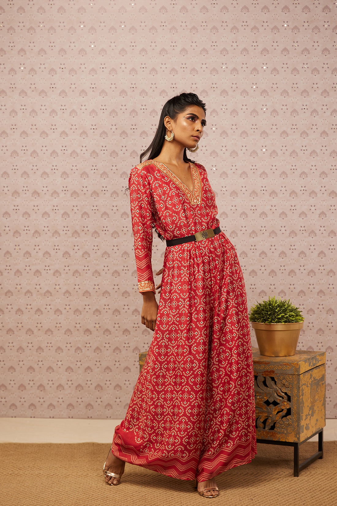 Featuring a satin based Jumpsuit. It is paired with a belt