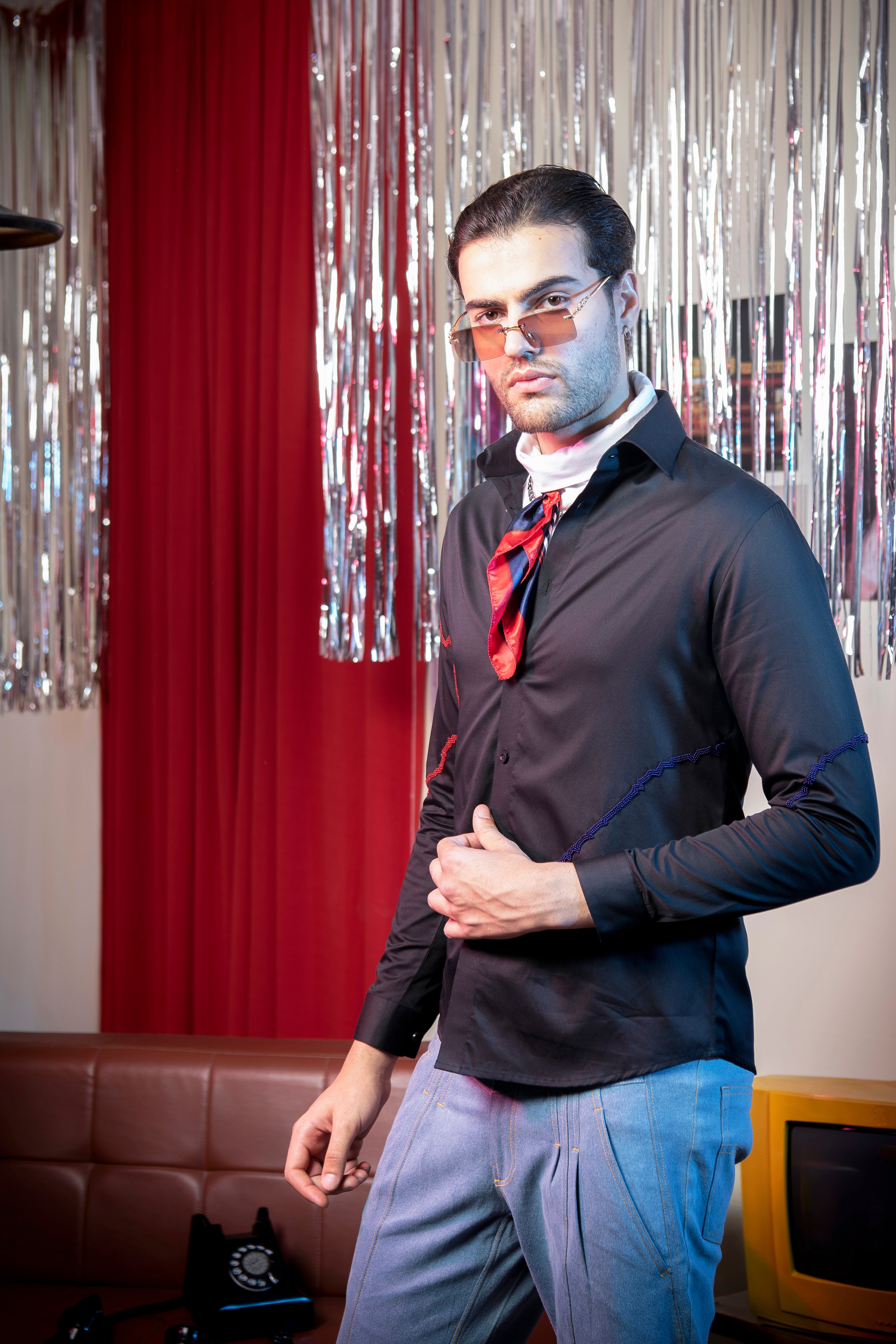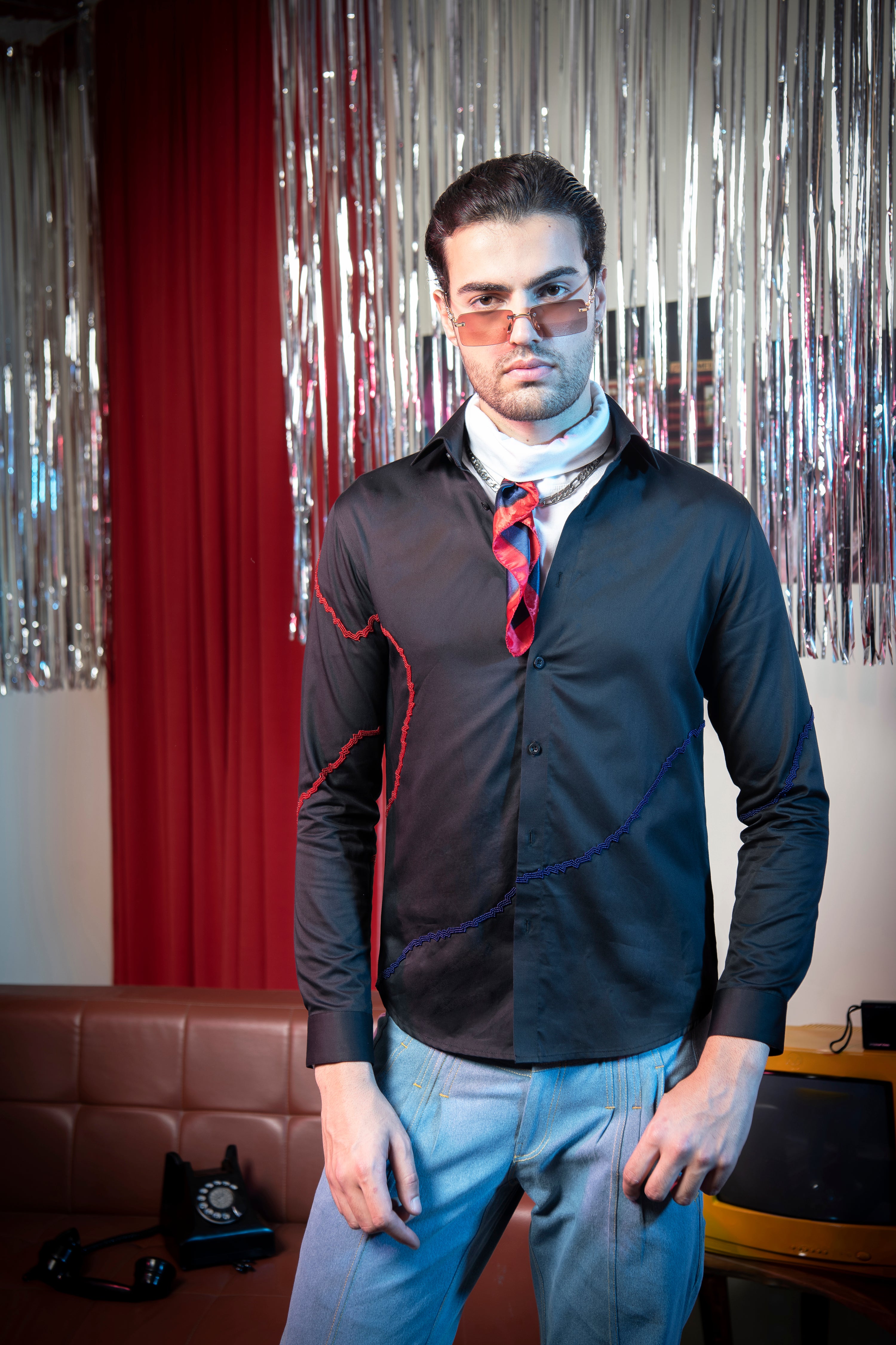 Featuring a black shirt in cotton base with beads work. Ideal for casual wear and occasions that embrace a carefree spirit.