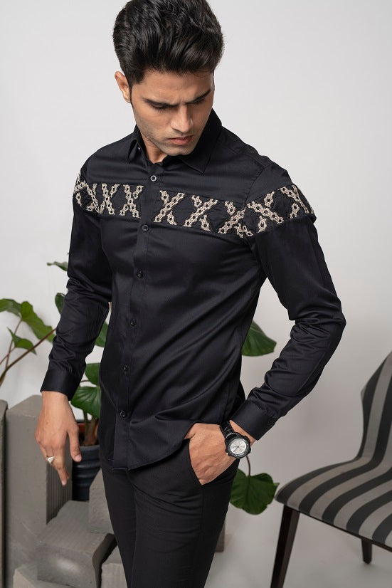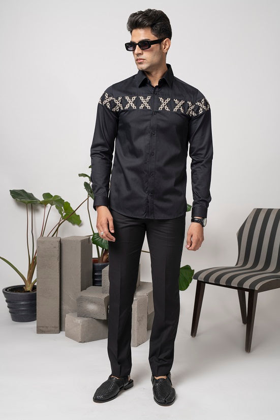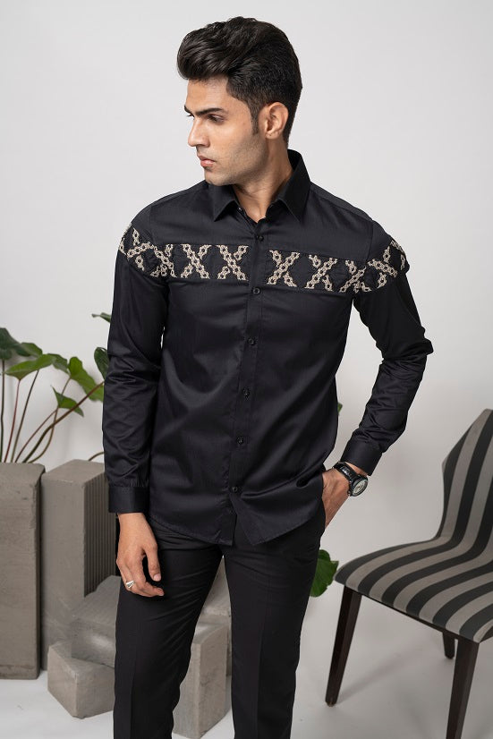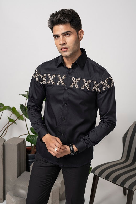 Featuring a black shirt in cotton base with stitched X's. This contains one piece only.