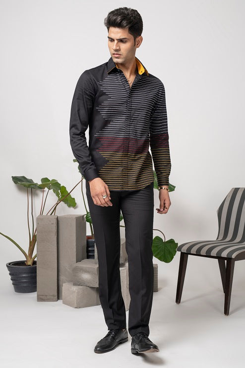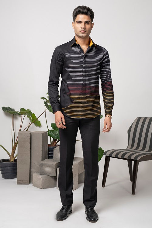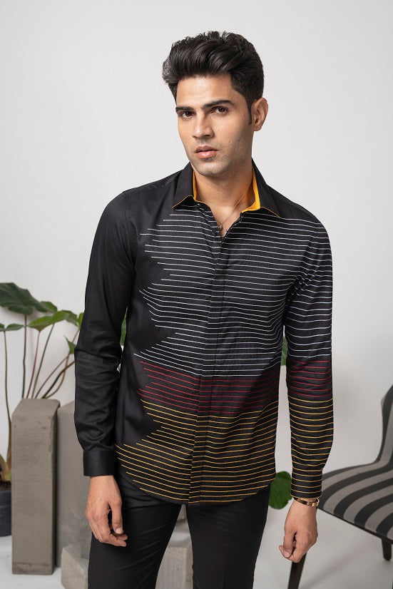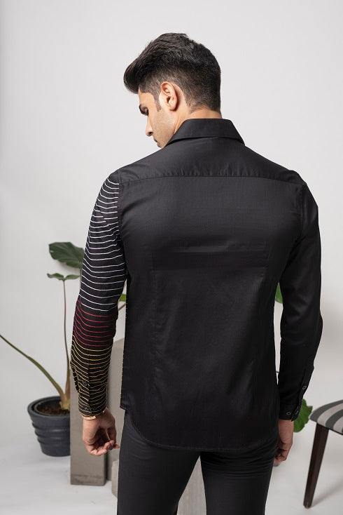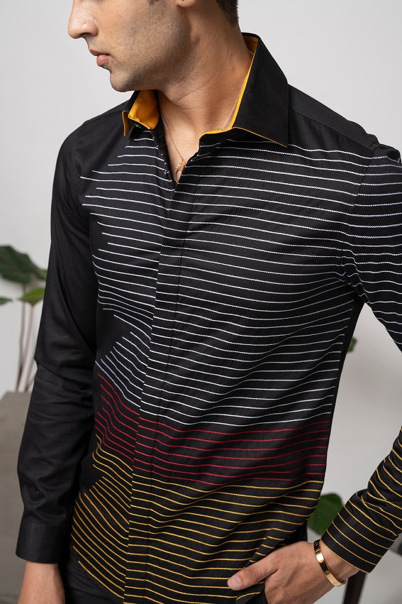 Featuring a black shirt in cotton base with stitched parallel lines. This contains one piece only.
