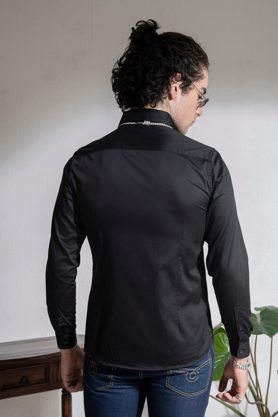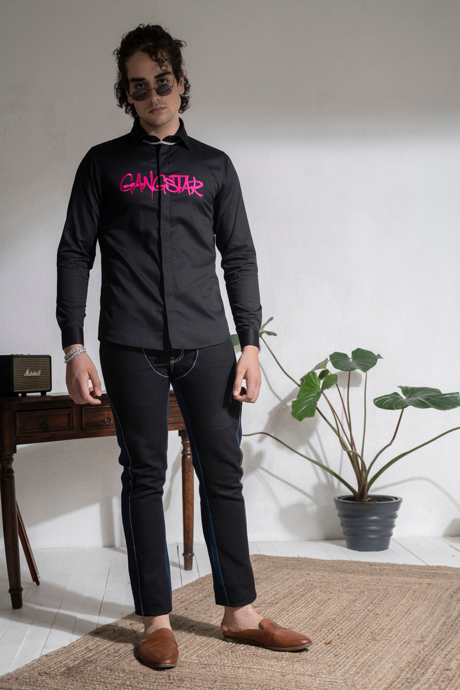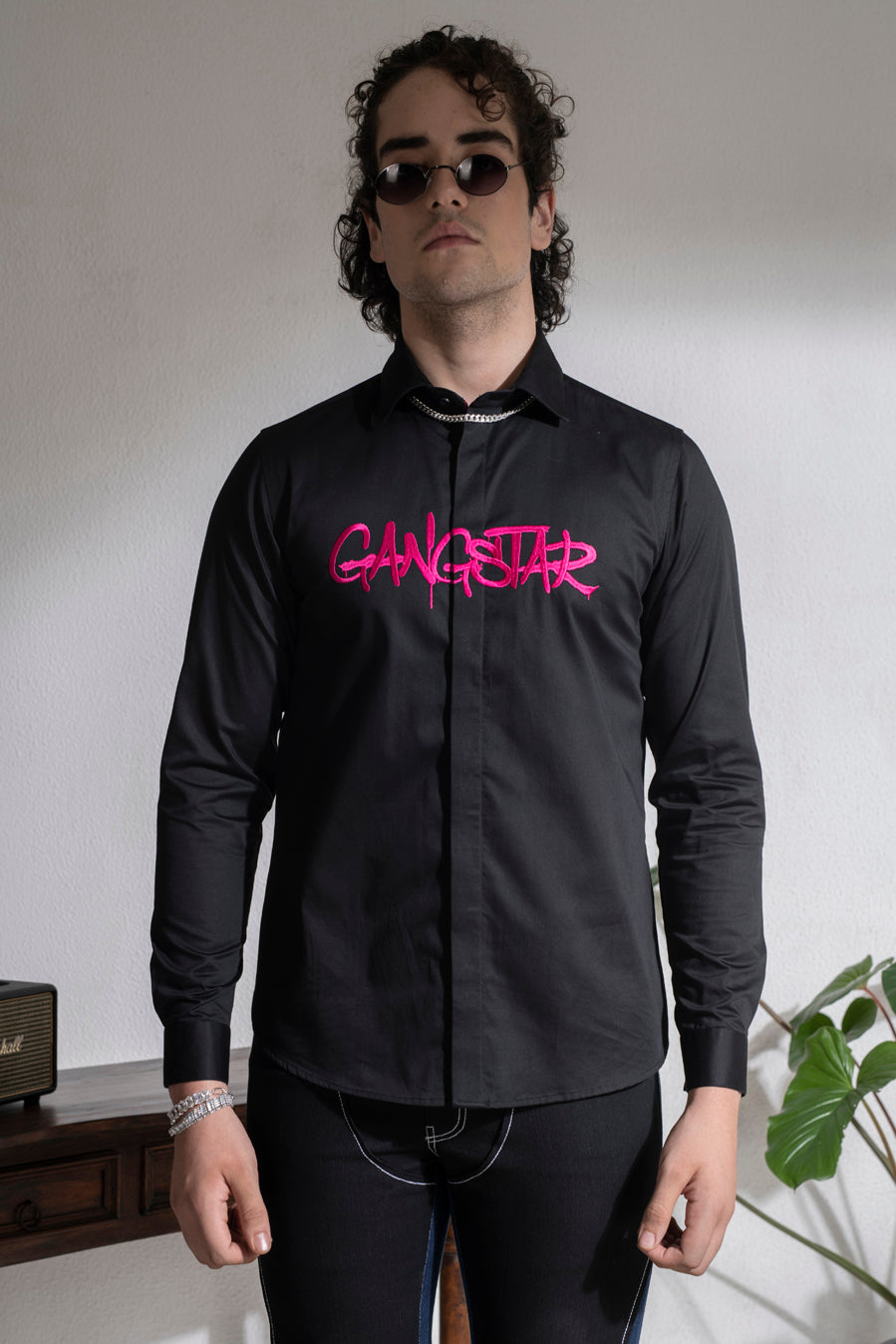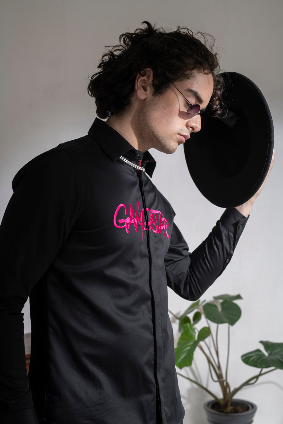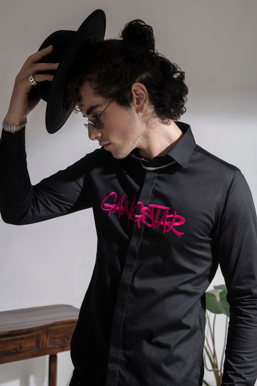 Featuring a black shirt in pure cotton base with a concealed placket and pink embroidery. This contains only one piece