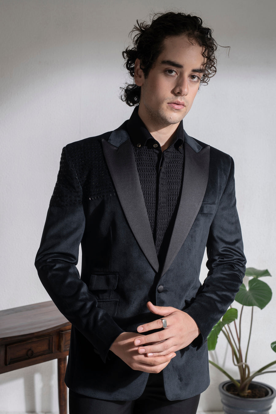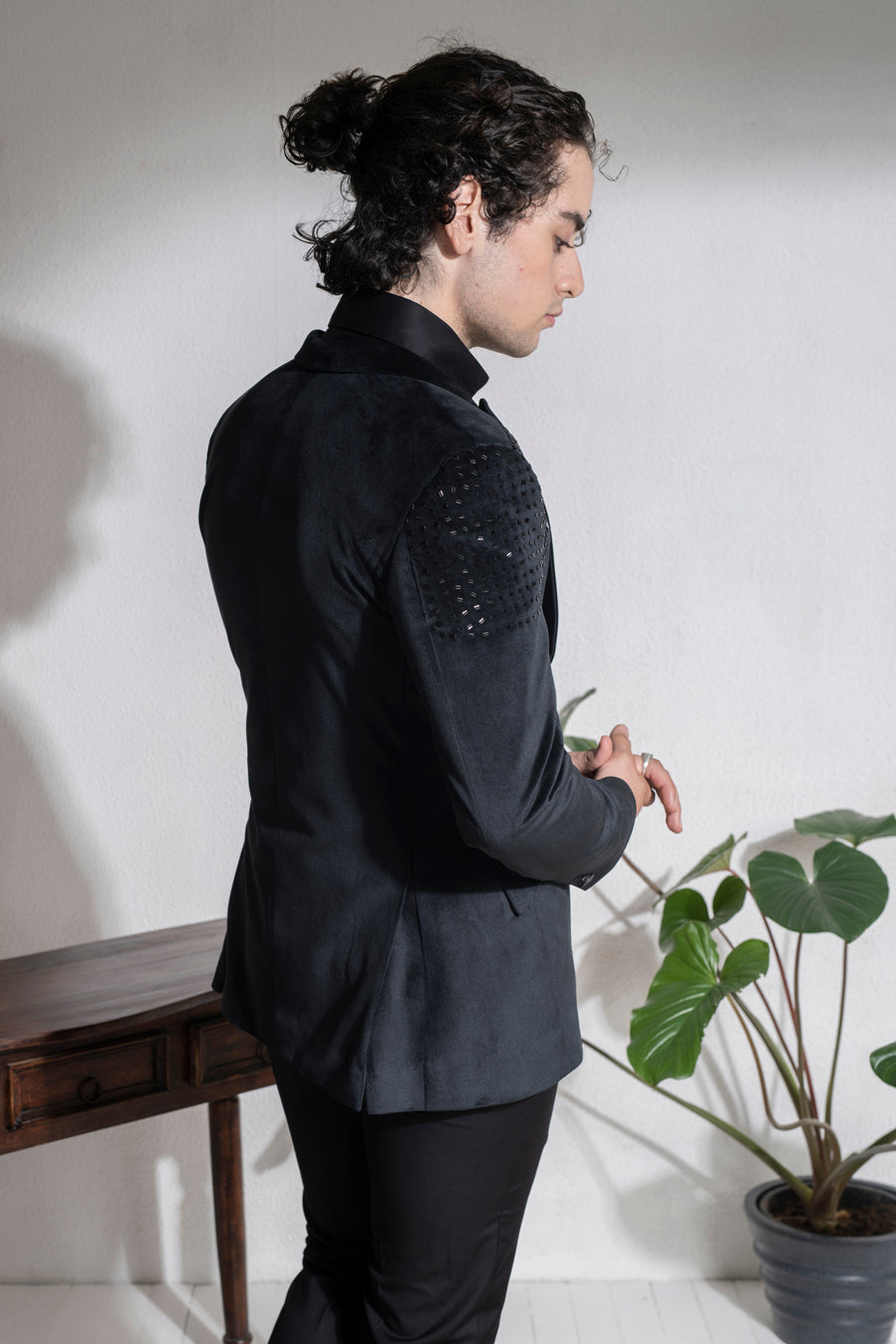 Black velvet embroidered suit set