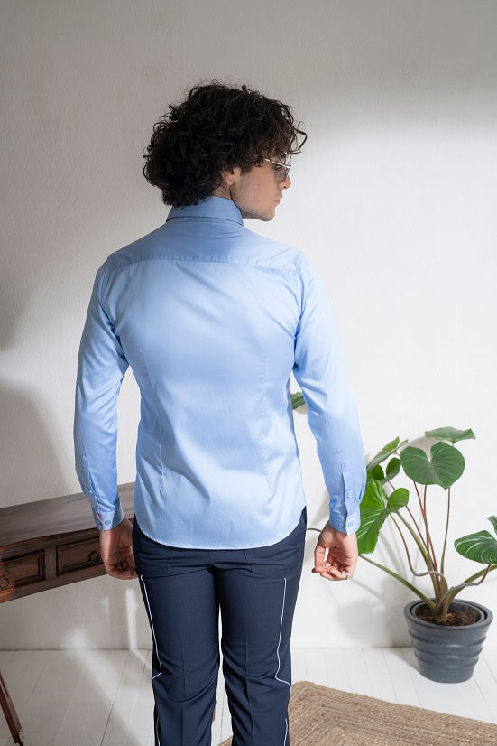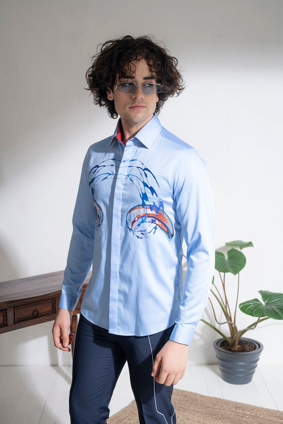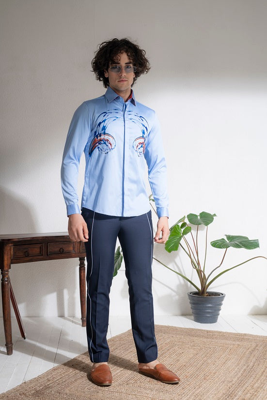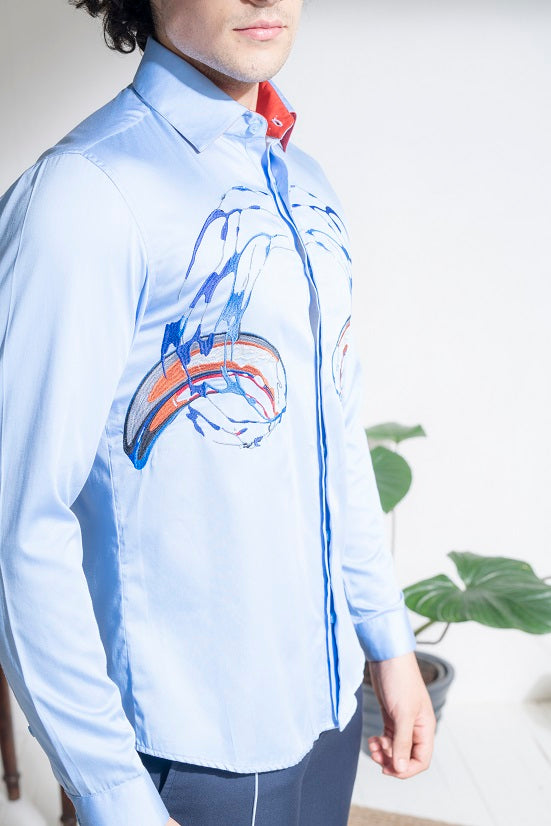 Blue cotton embroidery shirt