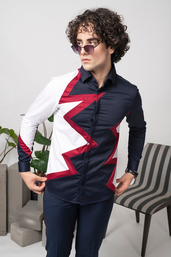 Featuring a blue shirt in cotton base with white and maroon star colour blocking. This contains one piece only.