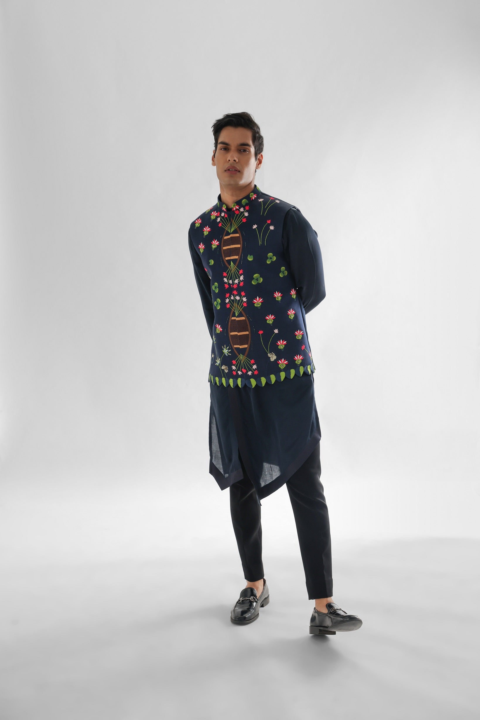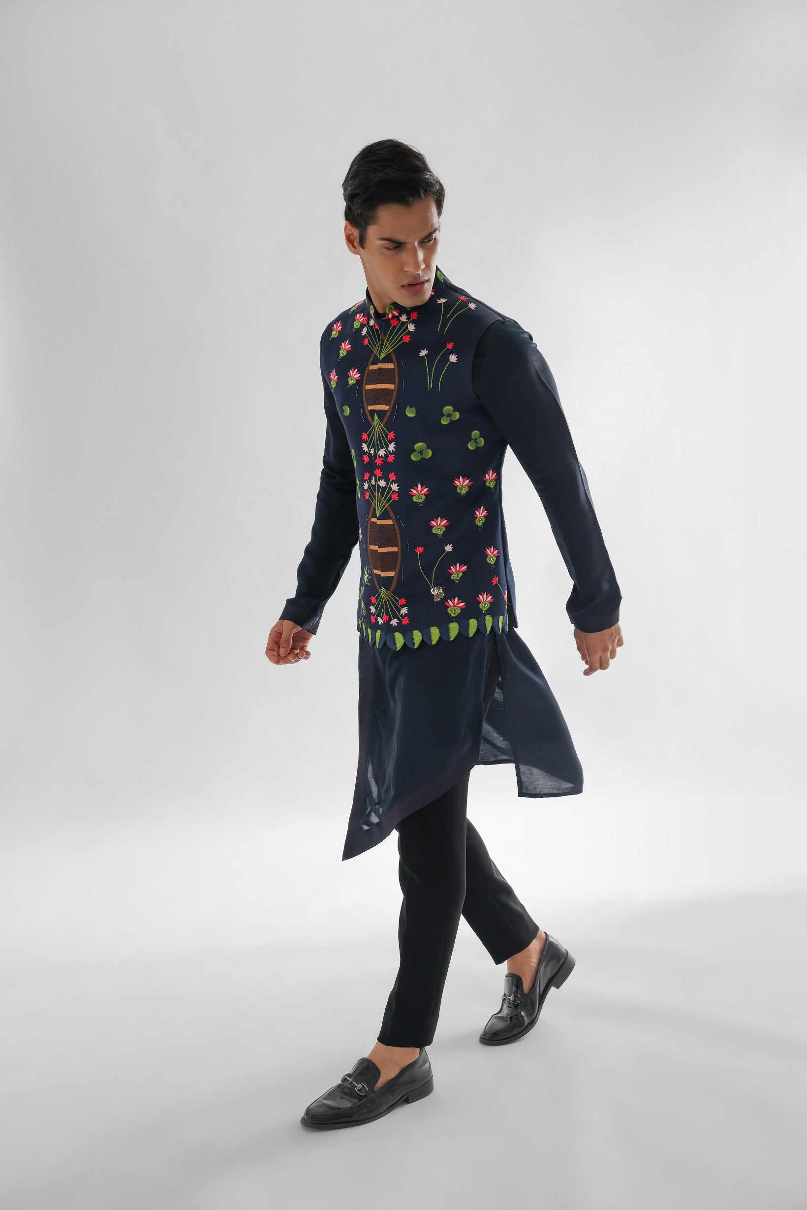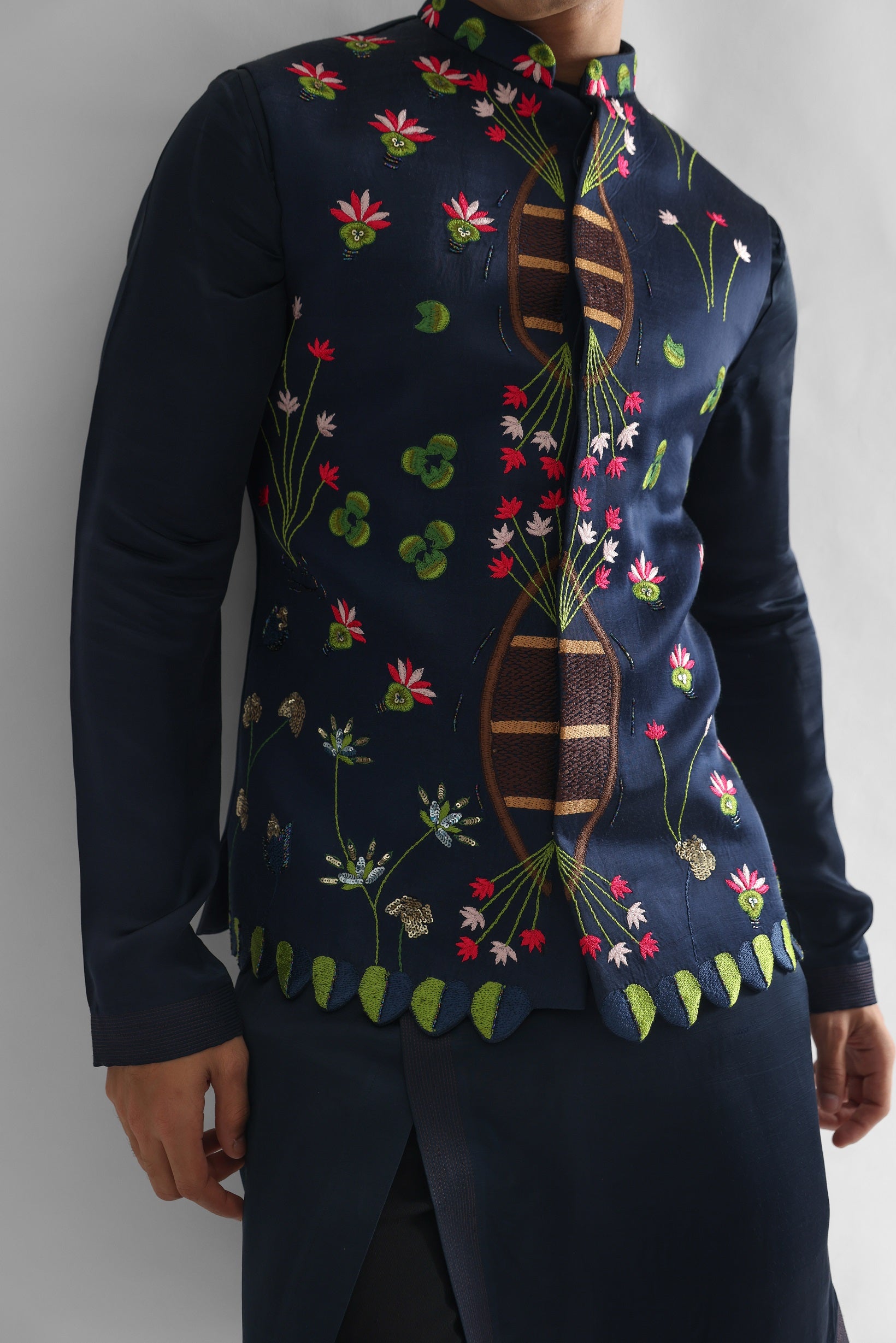 | MIDNIGHT BLUE NEHRU JACKET WITH INRICATE USE OF THREADWORK |