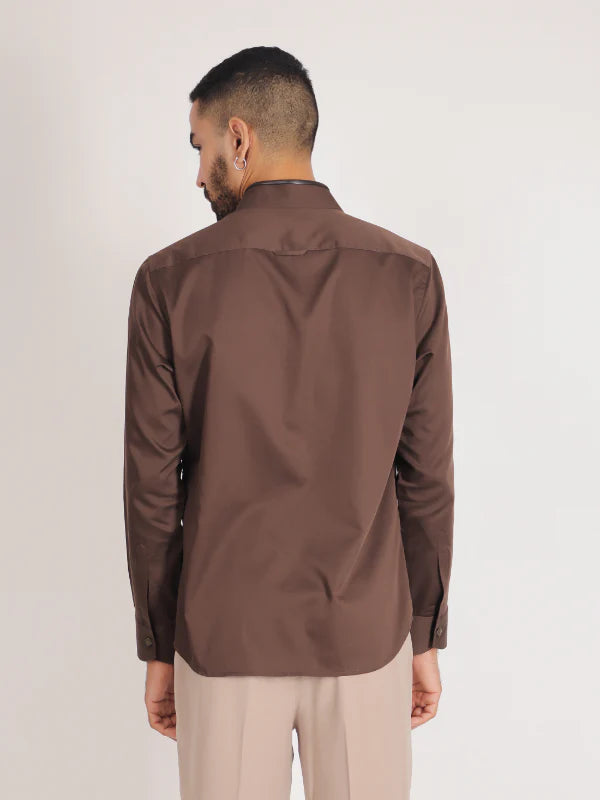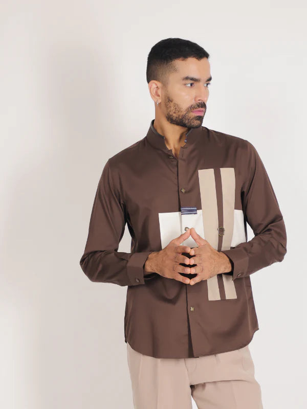 The rich brown hue exudes warmth and exclusivity, making it a versatile choice for discerning connoisseurs of style. Adorned with intricate embroidery, this shirt is not just clothing; it's a masterpiece, reflecting meticulous attention to detail and artistry. Immerse yourself in the world of unparalleled quality and timeless charm, designed for those who demand nothing less than the utmost in opulence and sophistication.