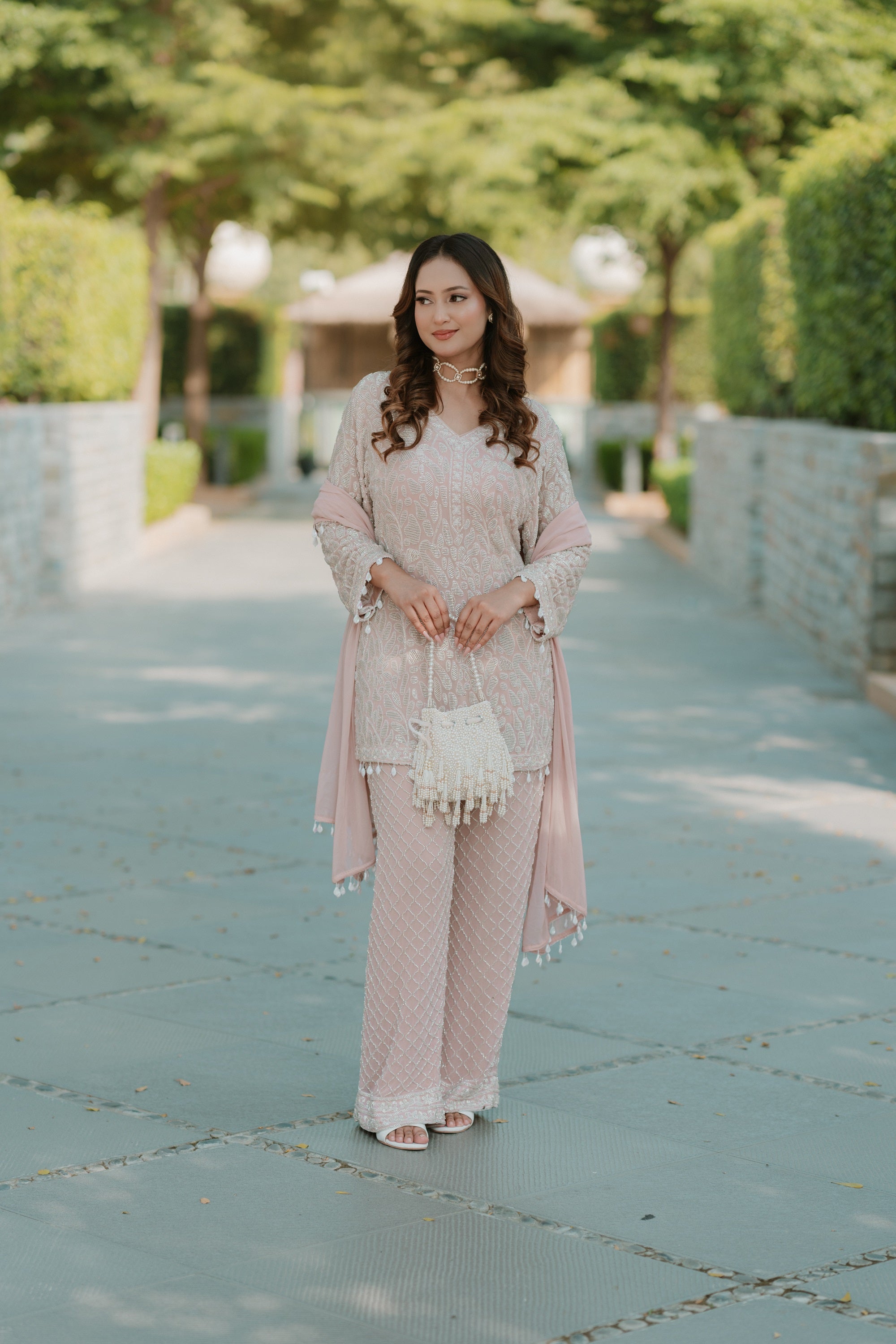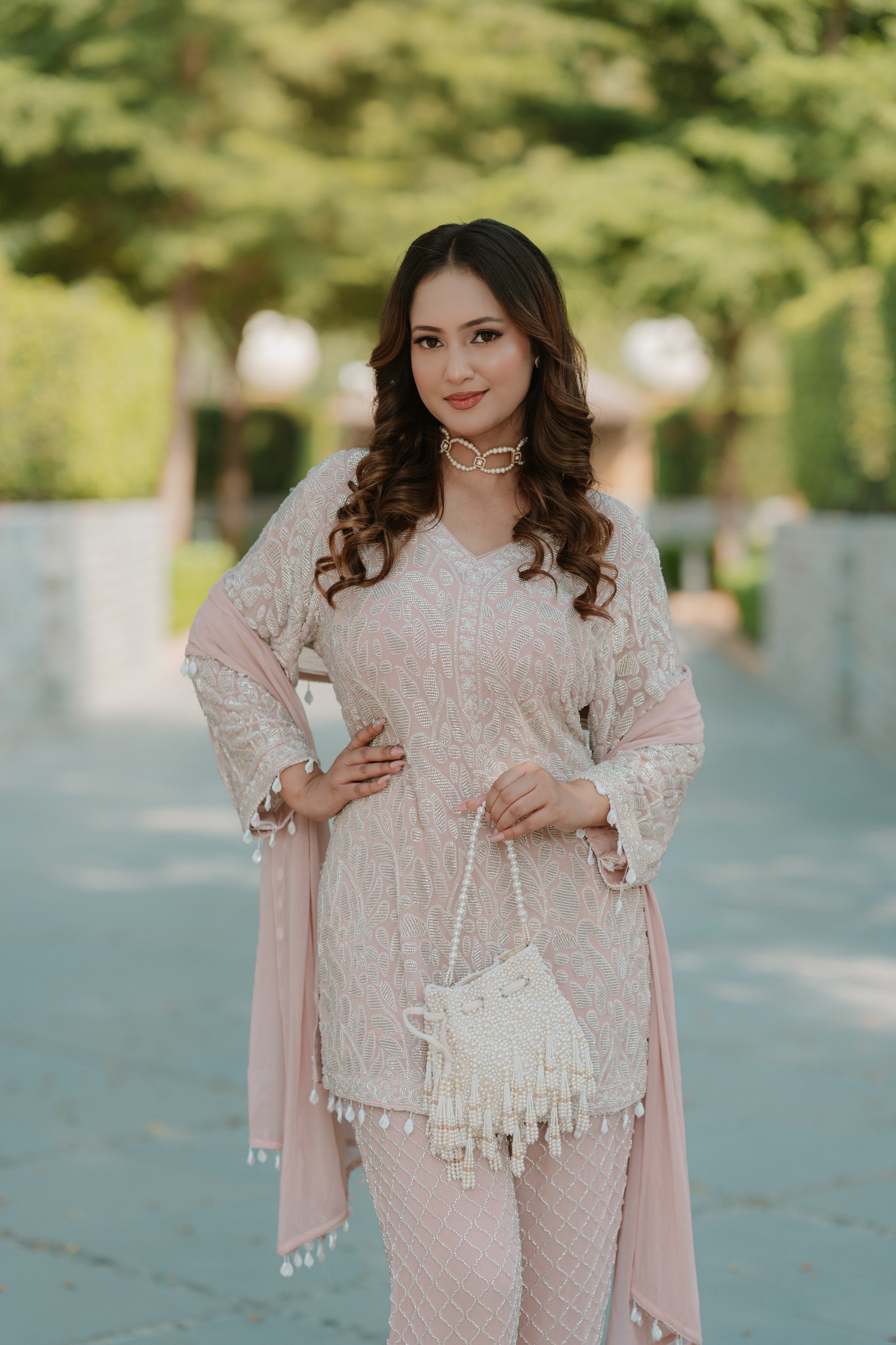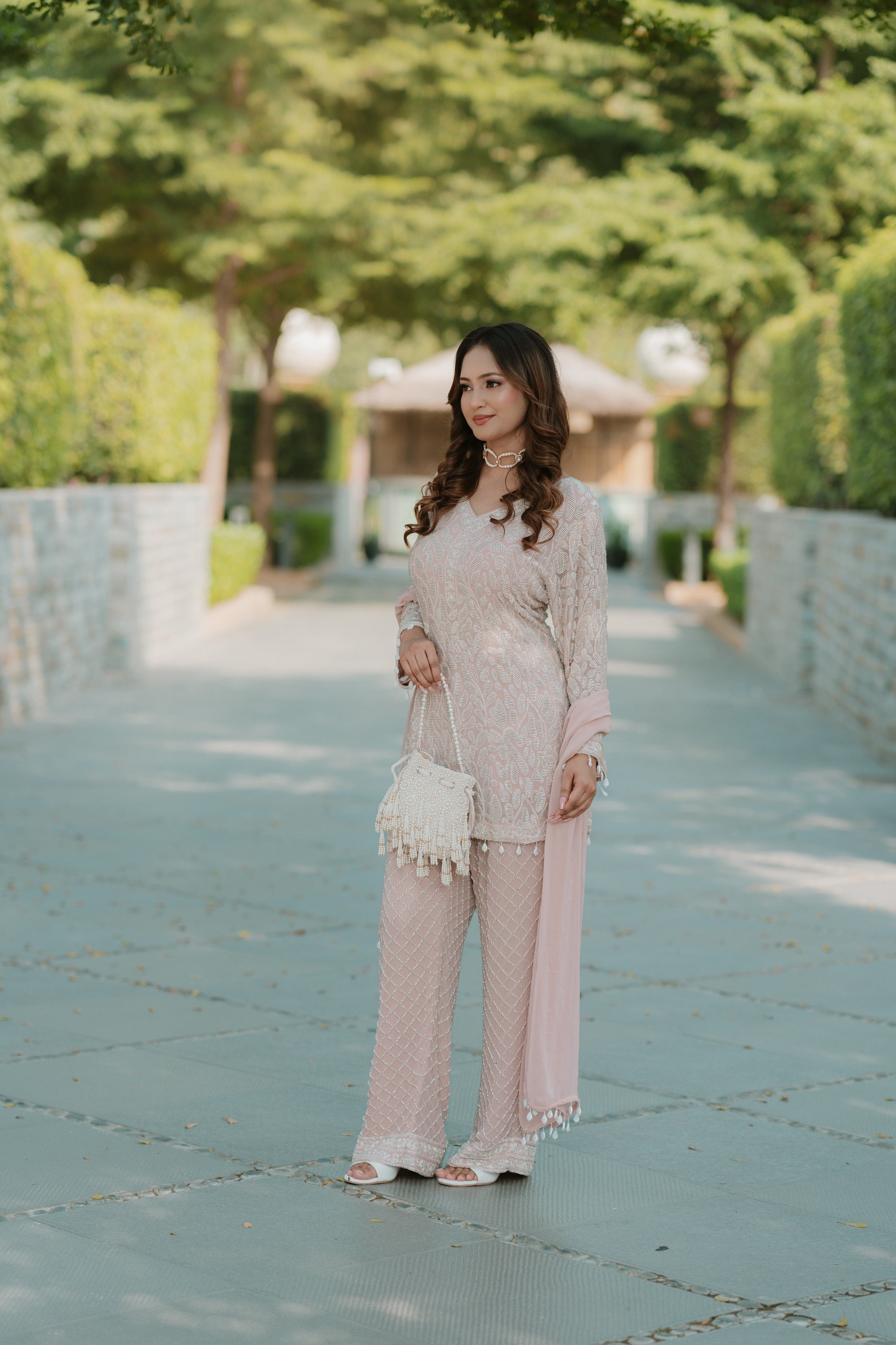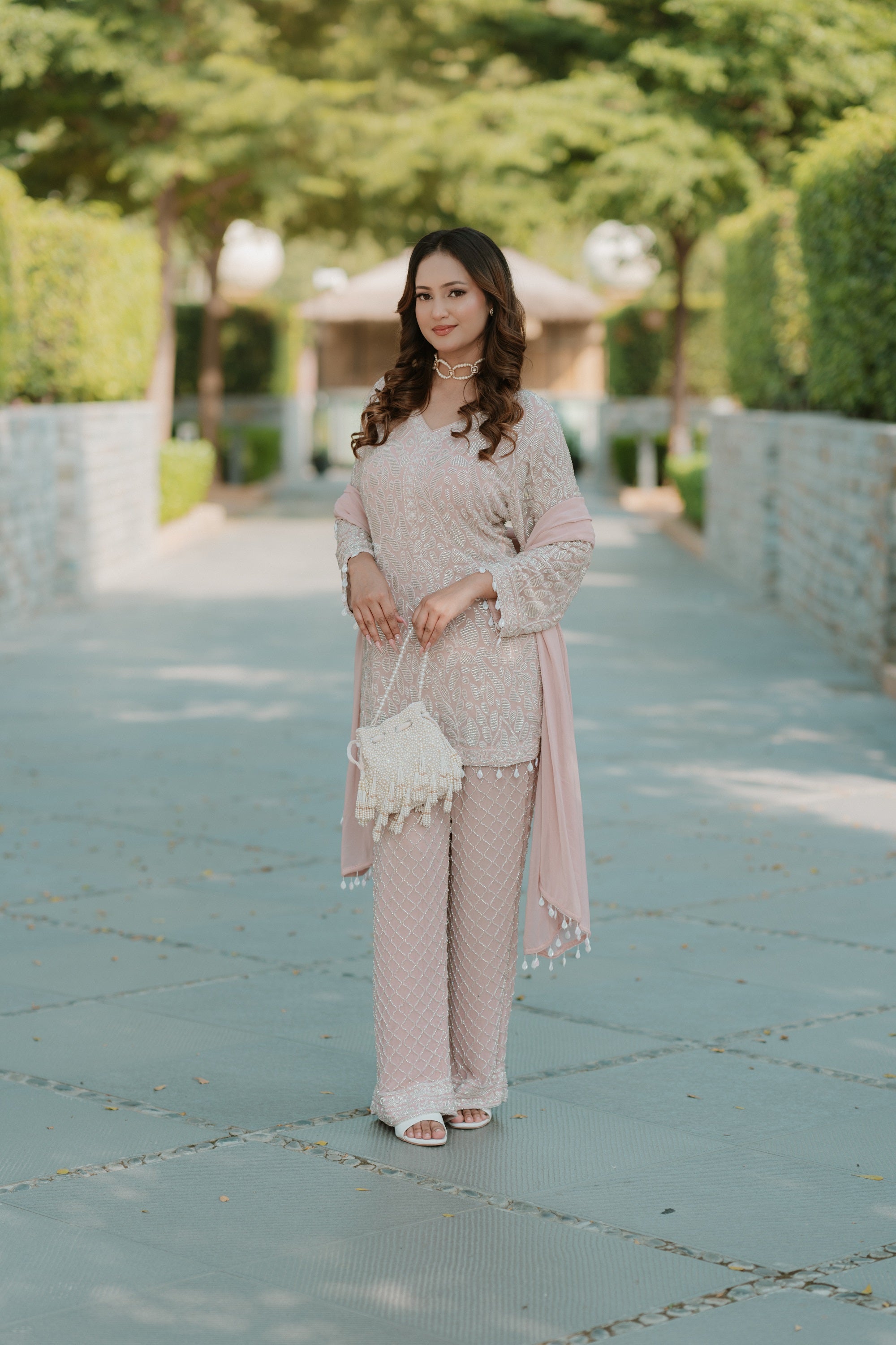 Elevate Your Ethnic Wardrobe With This Elegant Pure Georgette Suit Set In A Charming Pink Hue. Crafted From Premium-Quality Georgette Fabric, This Ensemble Offers A Lightweight, Flowy Drape That Ensures All-Day Comfort And Effortless Grace. The Soft Pink Color Adds A Touch Of Femininity, Making It Perfect For Festive Occasions, Celebrations, Or Evening Gatherings.