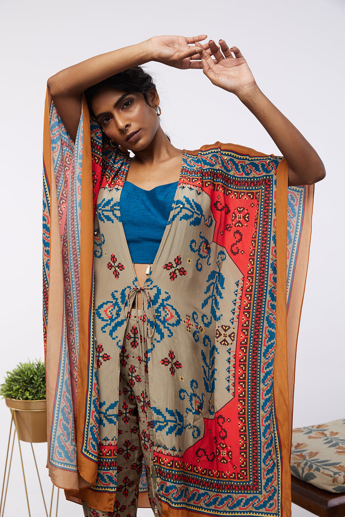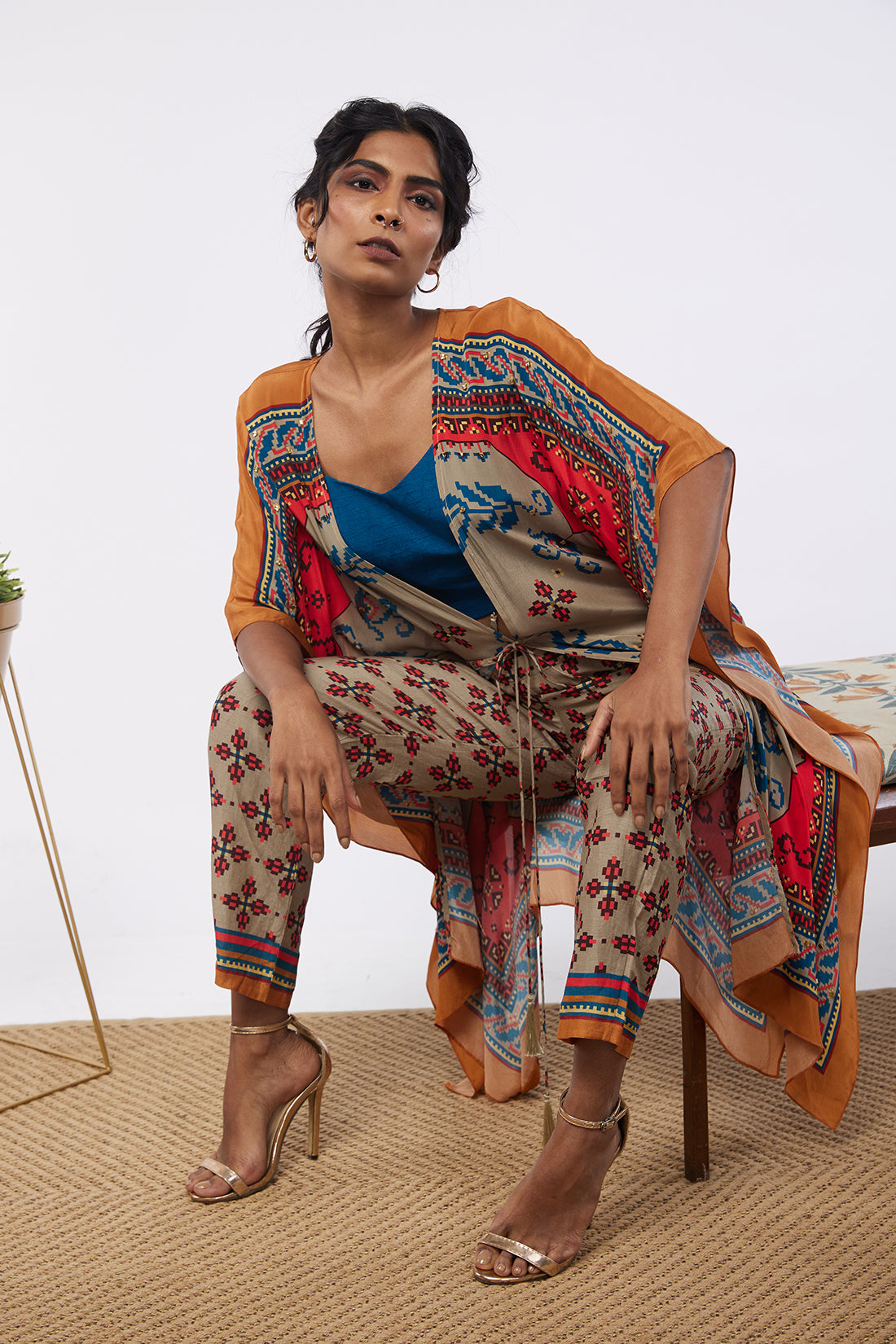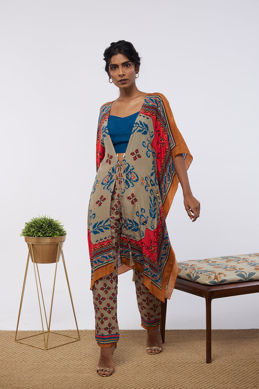 Multi-color Printed Co-ord Set with Kaftan Jacket.