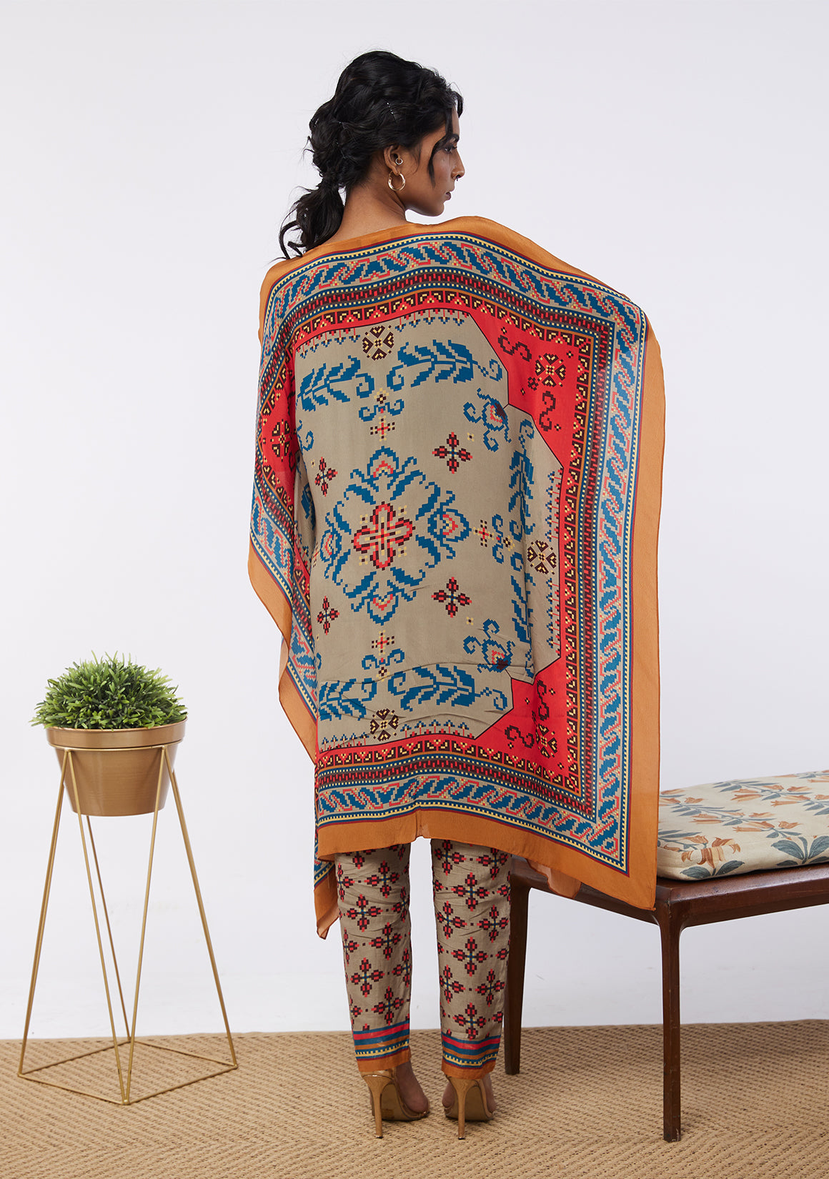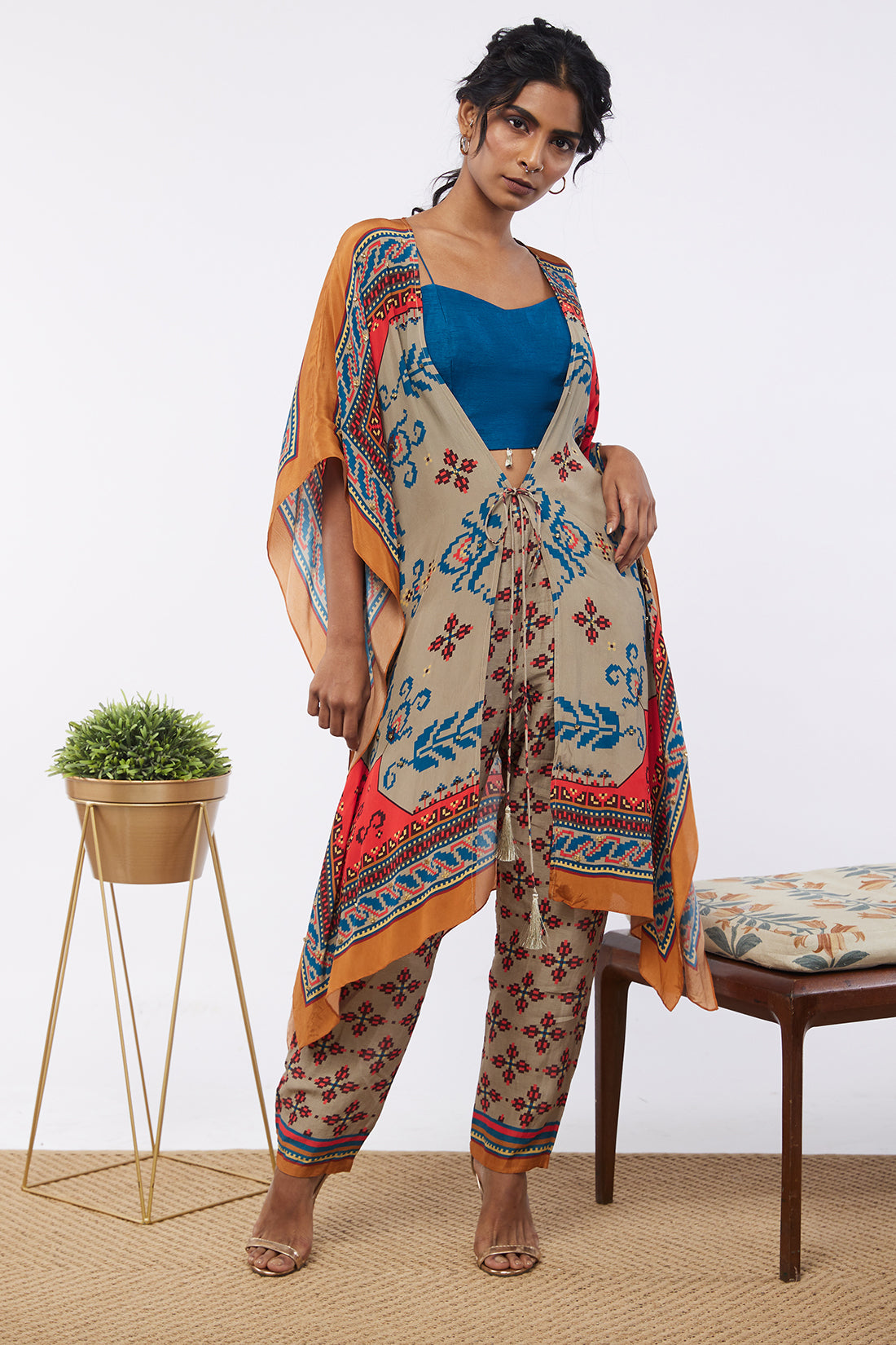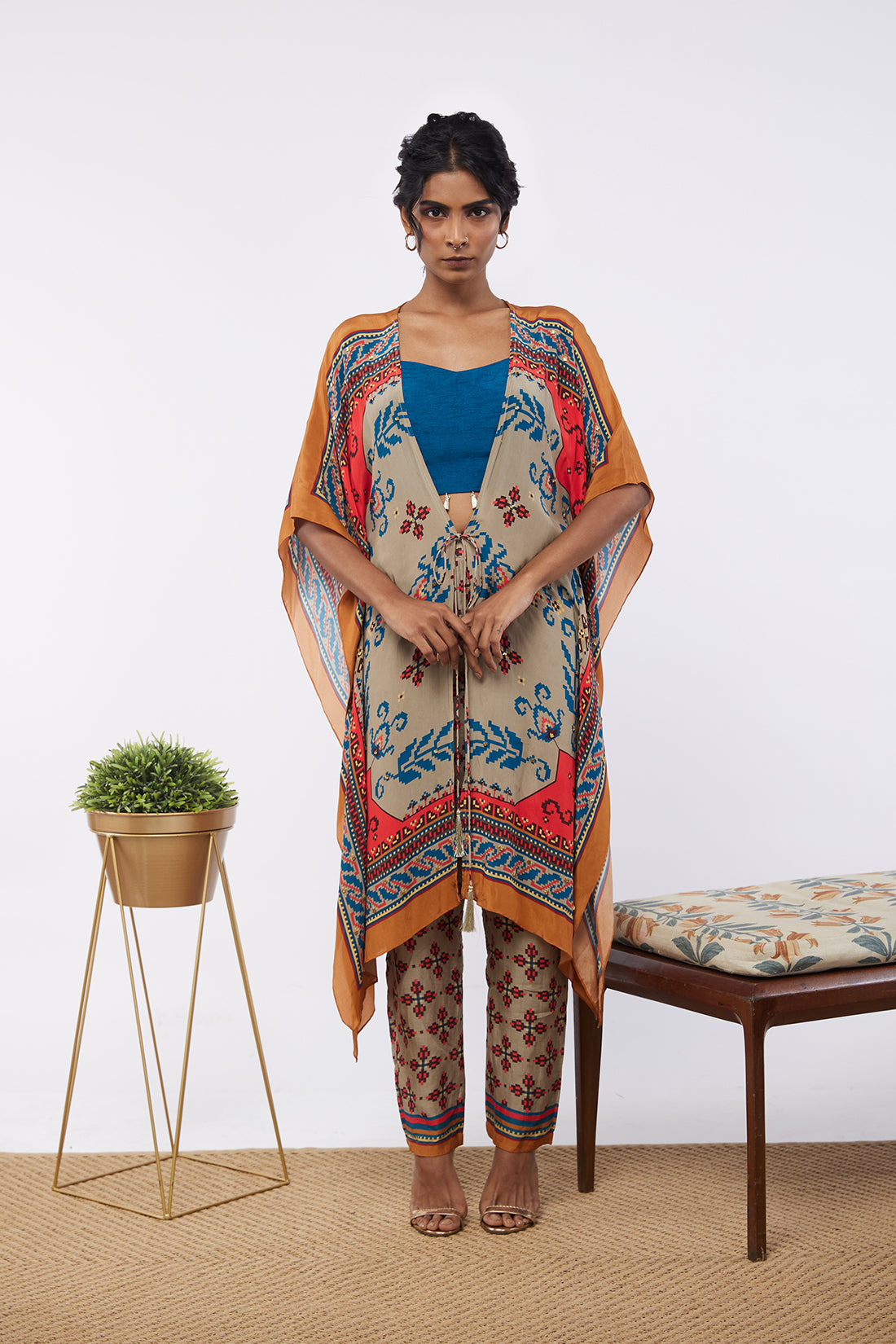 Multi-color Printed Co-ord Set with Kaftan Jacket.