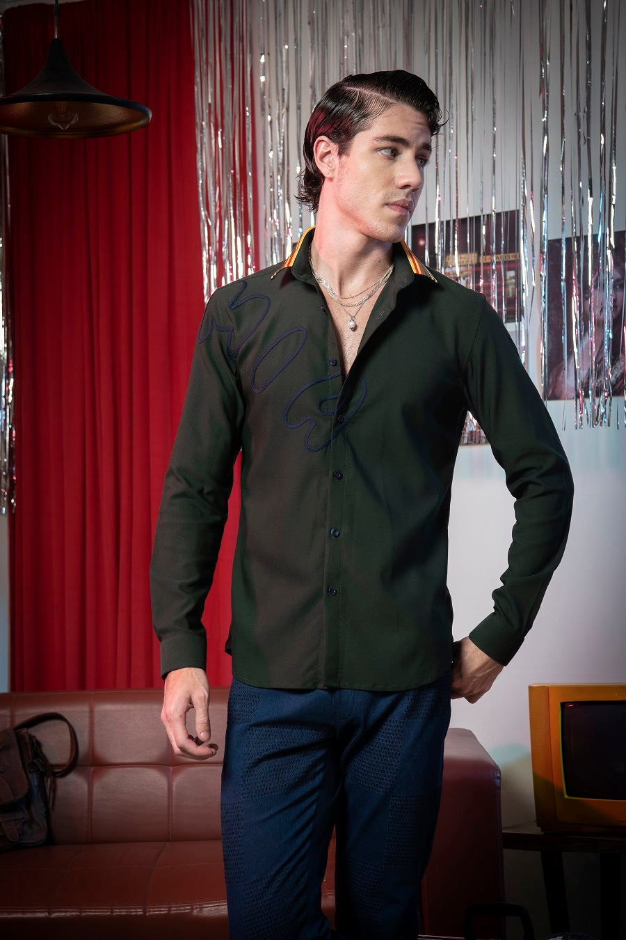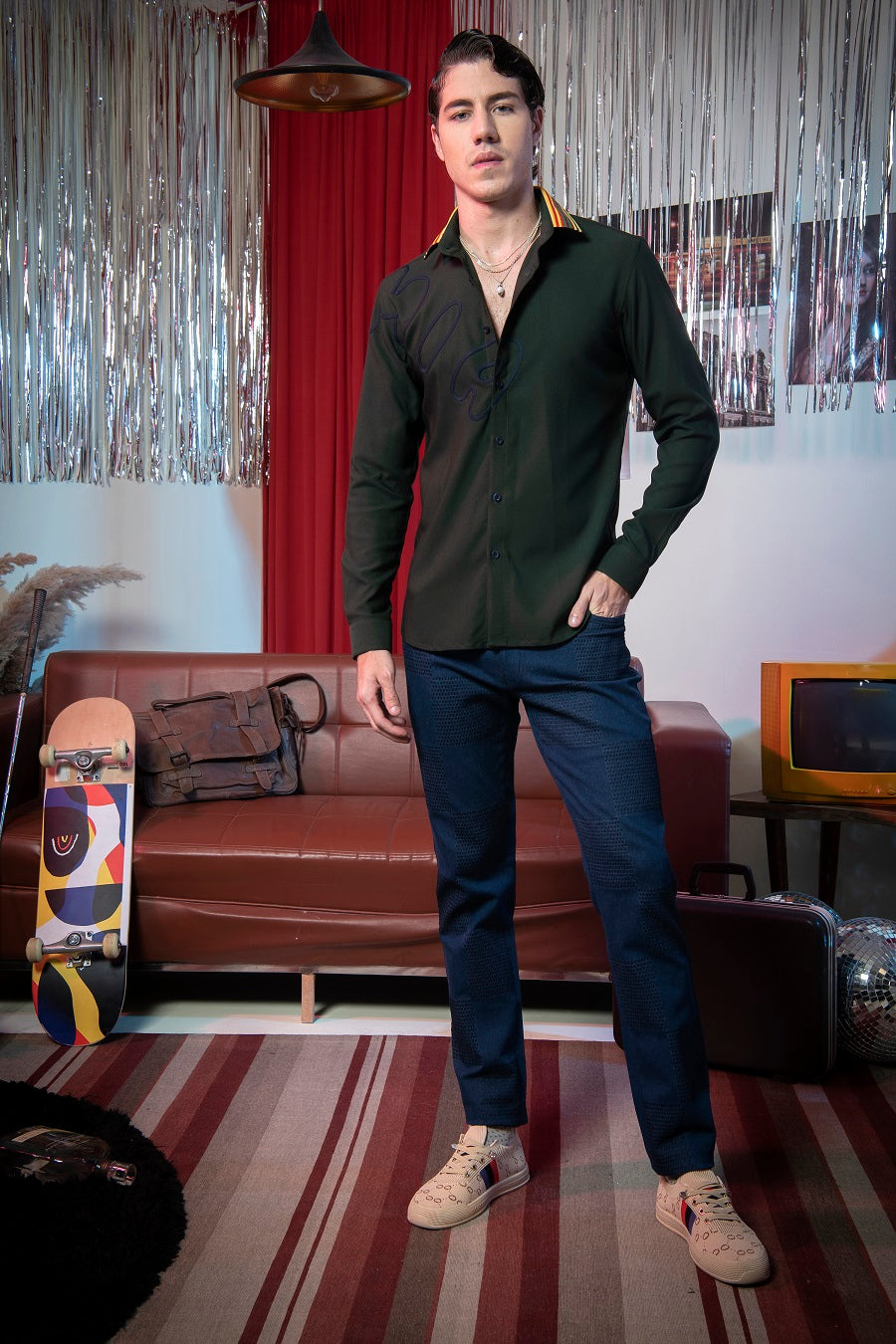 Featuring a green shirt in poly viscose base with applique work. Ideal for casual wear and occasions that embrace a carefree spirit.NOTE: The pants in the image are for styling purposes only