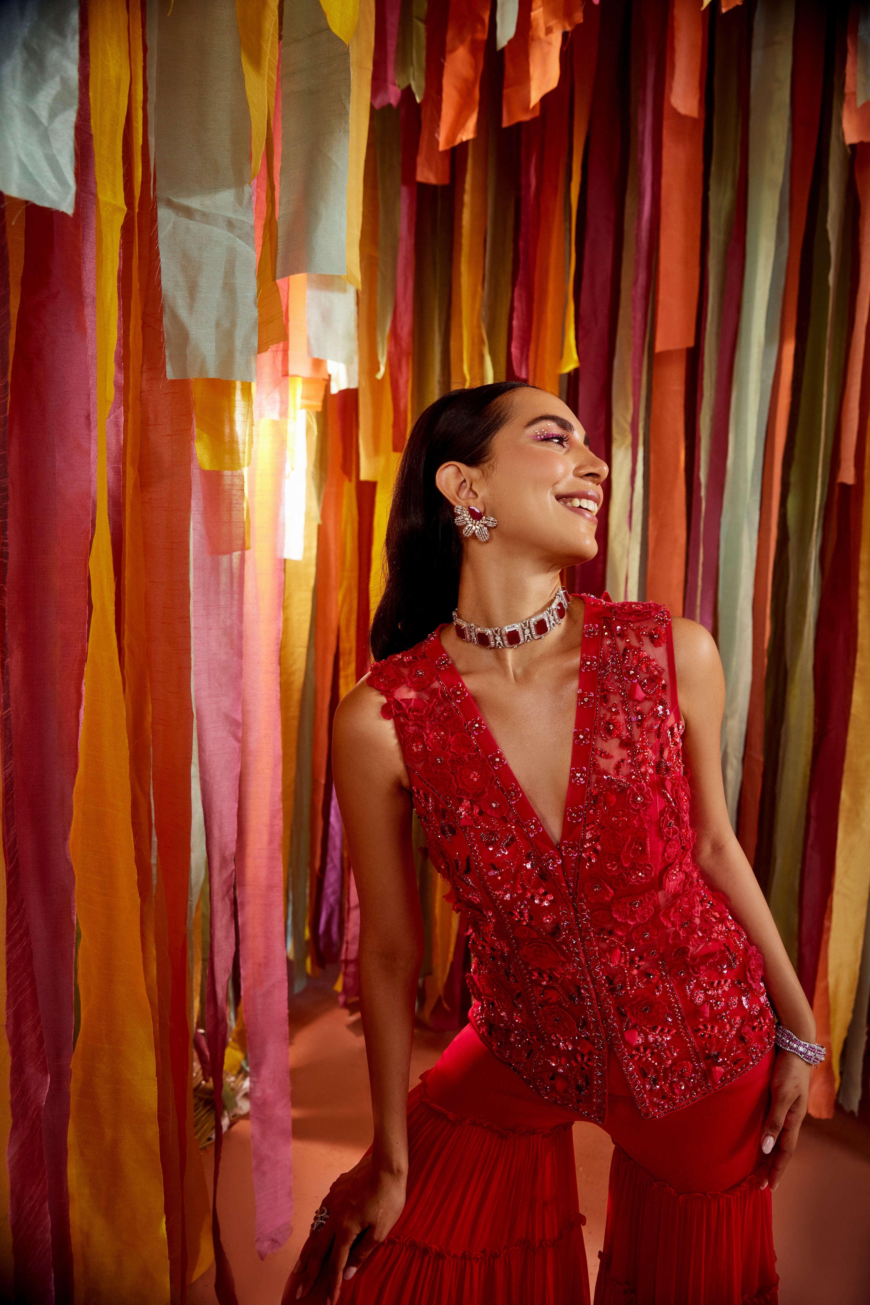 Hot pink 3d flowers kurta and sharara