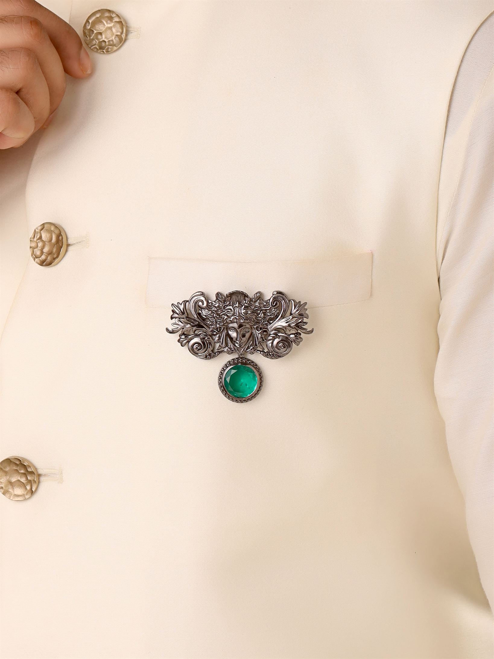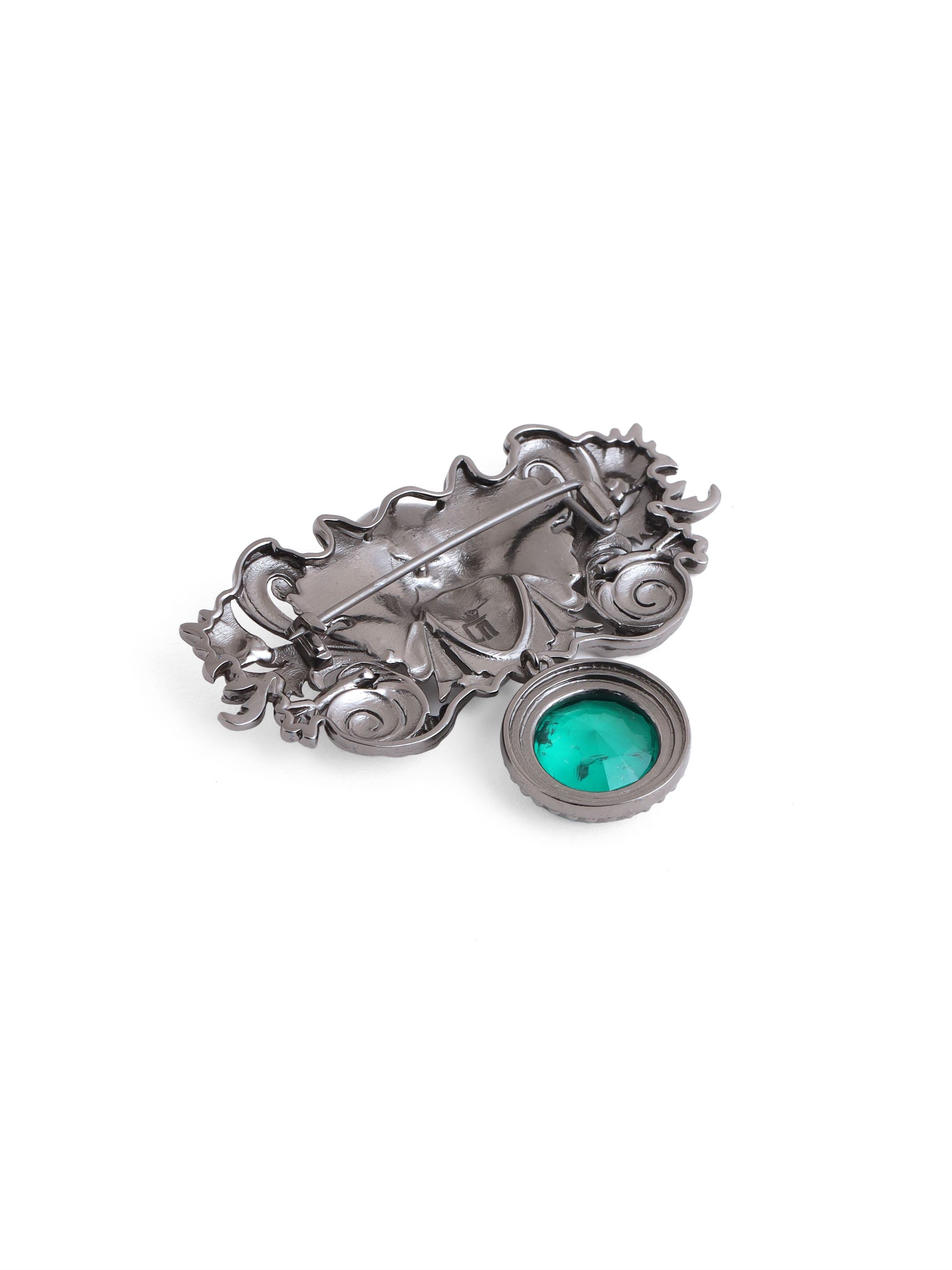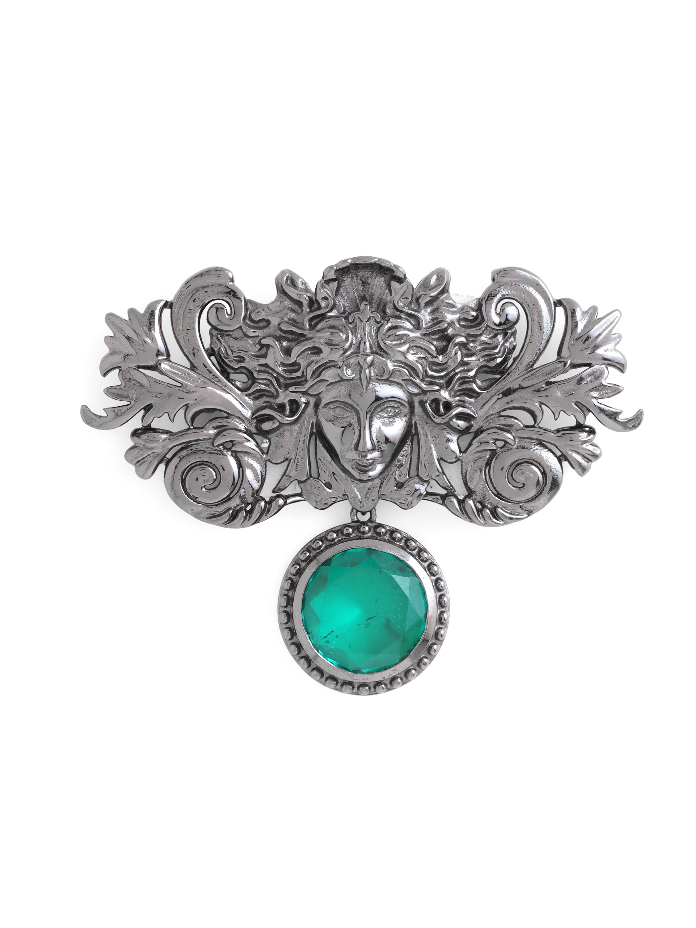 Medusa Brooch is a captivating accessory showcases an intricately designed Medusa, exuding an aura of enchantment and power. Crafted with artistry, the brooch captures the serpent-haired Gorgon's gaze that turns hearts to stone. Adorned with a brilliant green gemstone, it radiates a mesmerizing allure. Wear the Medusa Brooch as a bold statement of your inner strength and confidence, a reminder that facing life's challenges with unwavering poise can transform adversity into empowerment, just like the legendary Medusa herself..