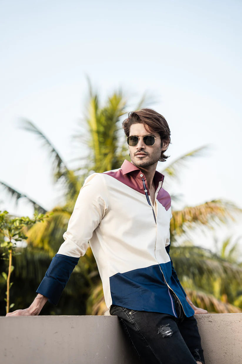 This isn't just a shirt; it's a canvas of creativity woven with precision. Experience a design that fuses tailored excellence with a bold artistic narrative.