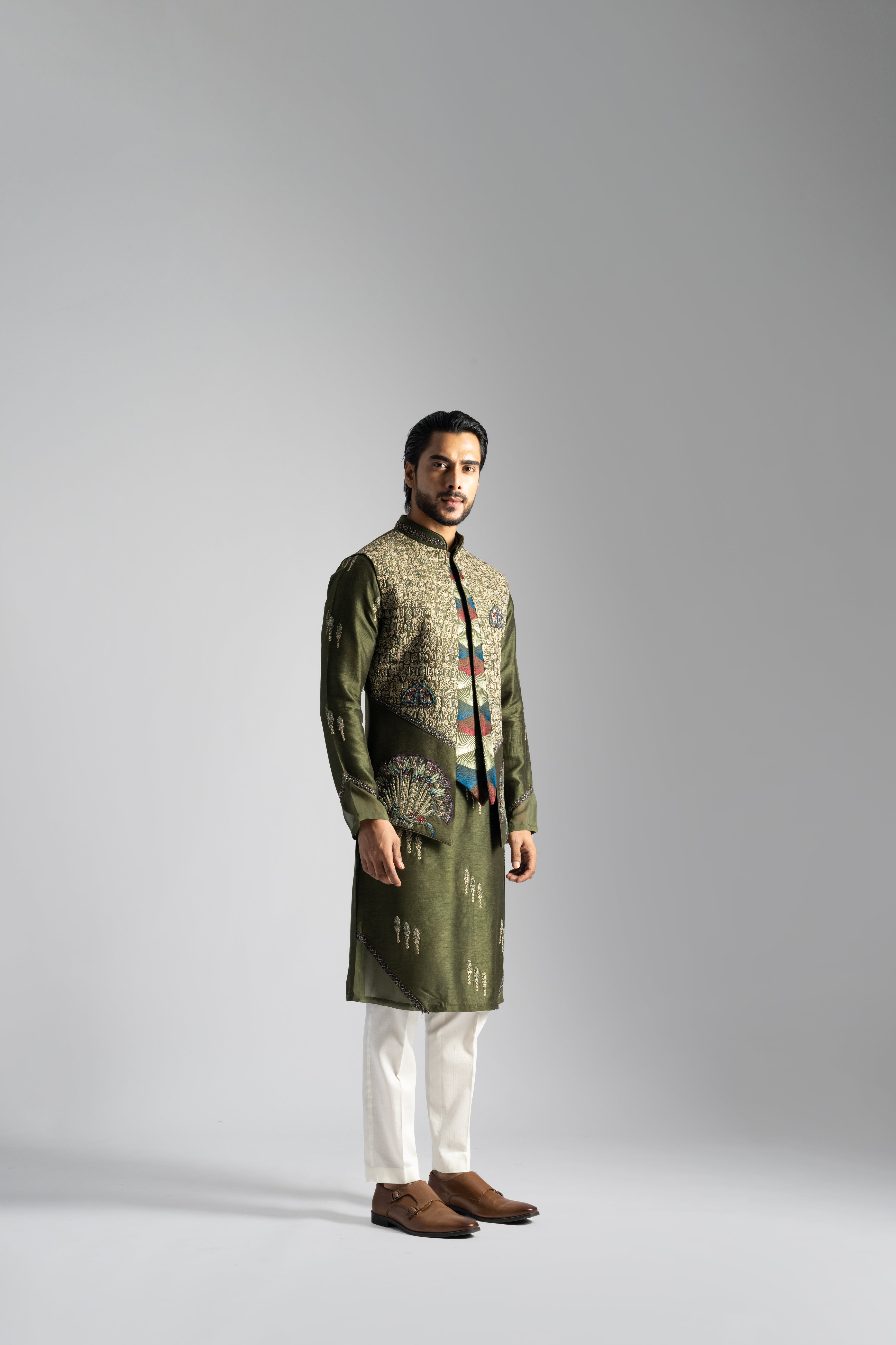 Olive green nehru jacket