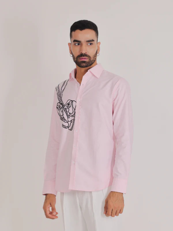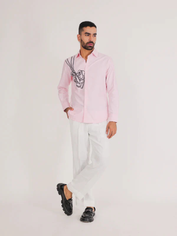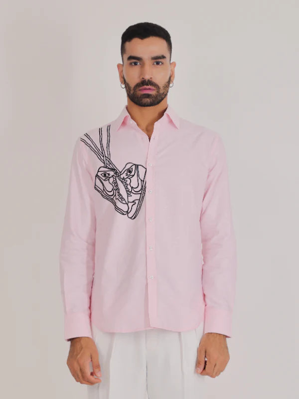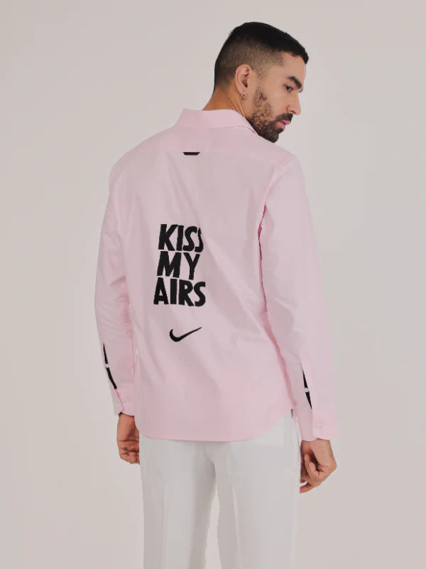 This shirt brings the heat with embroidered sneaker details, giving your look that unique edge. The pink hue is all about making a statement, whether you're flexing with the squad or owning the street. If you're all about bold style with a touch of swagger, this shirt is your go-to move. Stay fresh, stay fly – this shirt's got your back!