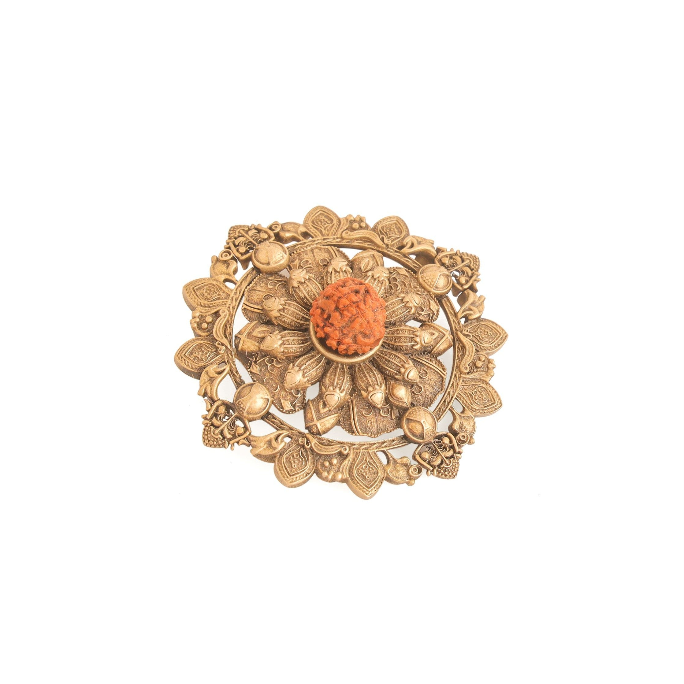 | Pushp Rudraksha Brooch is a divine fusion of floral elegance and sacred symbolism. This exquisite brooch features a delicate floral design encasing a holy Rudraksha bead, representing the harmonious union of nature and spirituality. Crafted with meticulous care and premium materials, it exudes beauty and mystique, making it a perfect accessory for Mahashivratri celebrations and spiritual rituals. Let the Pushp Rudraksha Brooch be your sacred adornment as you honour the divine energy of Lord Shiva and embrace the blessings of nature. |