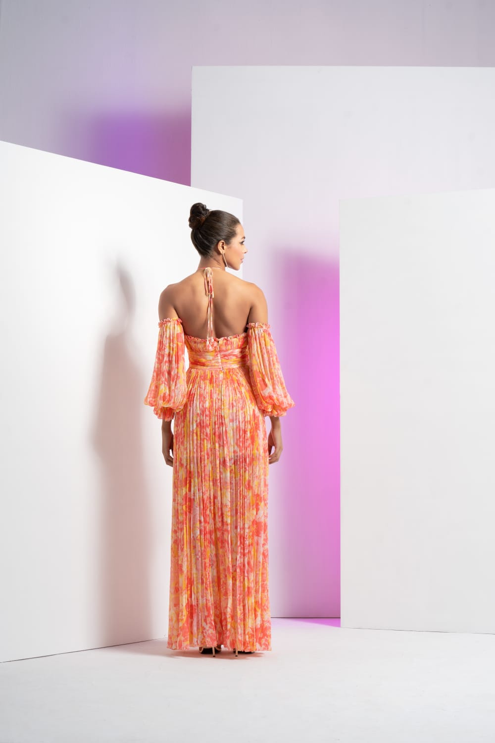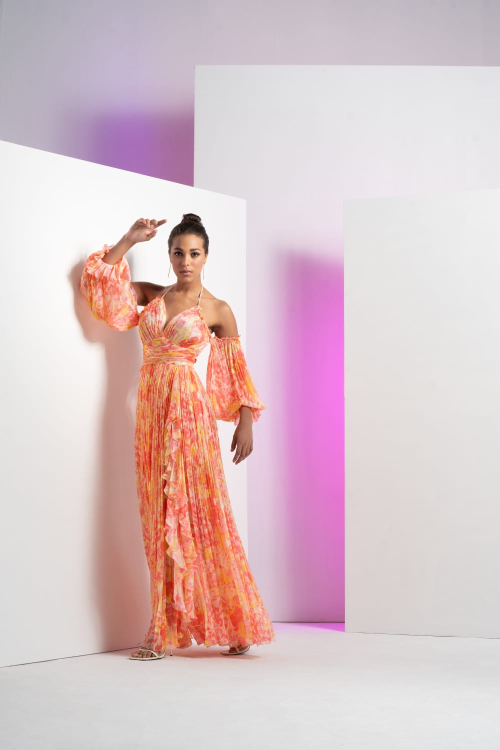 The Red Pancy Daisy long halter neck dress is a striking and bold choice for those who want to make a powerful fashion statement. The rich red color exudes confidence and passion, while the halter neck design adds a touch of allure. The dress features daisy embellishments, which add a playful and charming element to its overall appeal. With its flowing, long silhouette, this dress is perfect for a special evening out, combining elegance with a hint of playfulness. It's an ideal pick for those who wish to stand out in a crowd and leave a lasting impression.