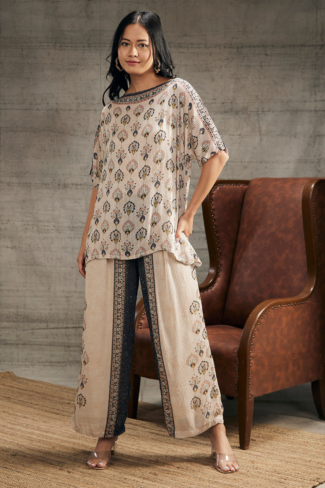 Elevate Your Occasion Wear With The Understated Elegance Of The Sarouk Sequin Co-Ord Set. Crafted From Premium Sequin Fabric In A Timeless Beige Hue, This Ensemble Brings A Perfect Balance Of Glamour And Grace. The Set Includes A Chic, Tailored Top And Matching Bottom, Both Adorned With All-Over Sequins That Shimmer Subtly With Every Movement. The Neutral Tone Adds Sophistication, Making It A Versatile Pick For Both Day And Evening Events. Whether You're Attending A Festive Gathering, Cocktail Party, Or Special Celebration, This Co-Ord Set Ensures You Shine With Effortless Charm.
