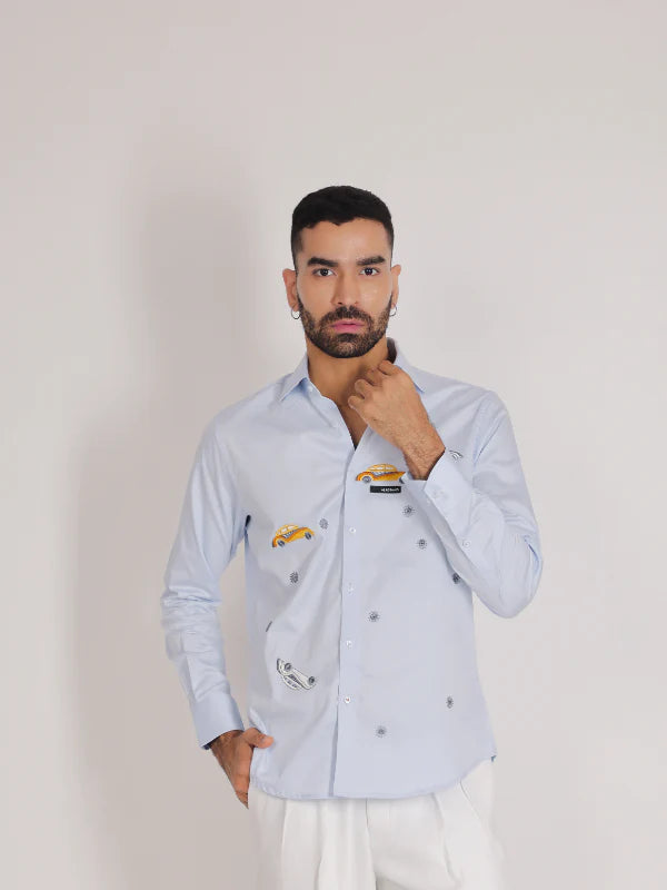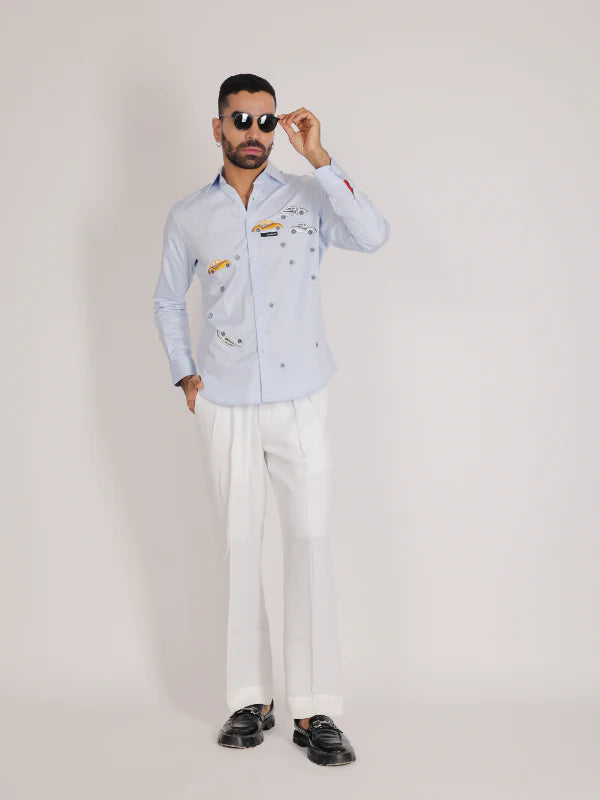 The sky blue hue radiates positive vibes, making it the perfect choice for those who want to stand out in the crowd. With intricate embroidery that's as cool as it is funky, this shirt is designed to make heads turn. So, if you're looking to add a splash of creativity and a whole lot of attitude to your wardrobe, this Sky Blue Embroidered Shirt is your go-to ticket for a fashionable adventure.