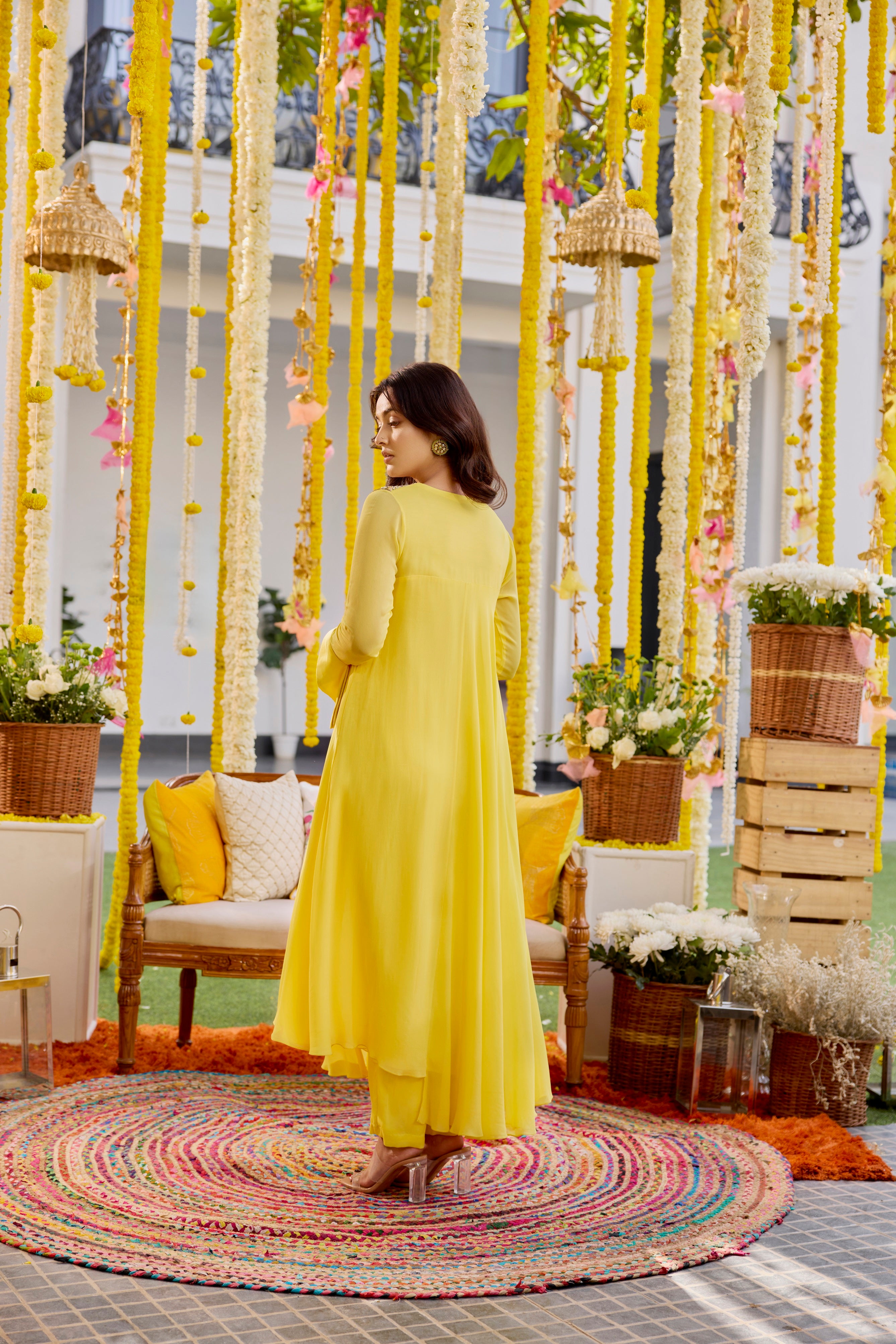 Sunshine yellow asymmetric kurta with pants