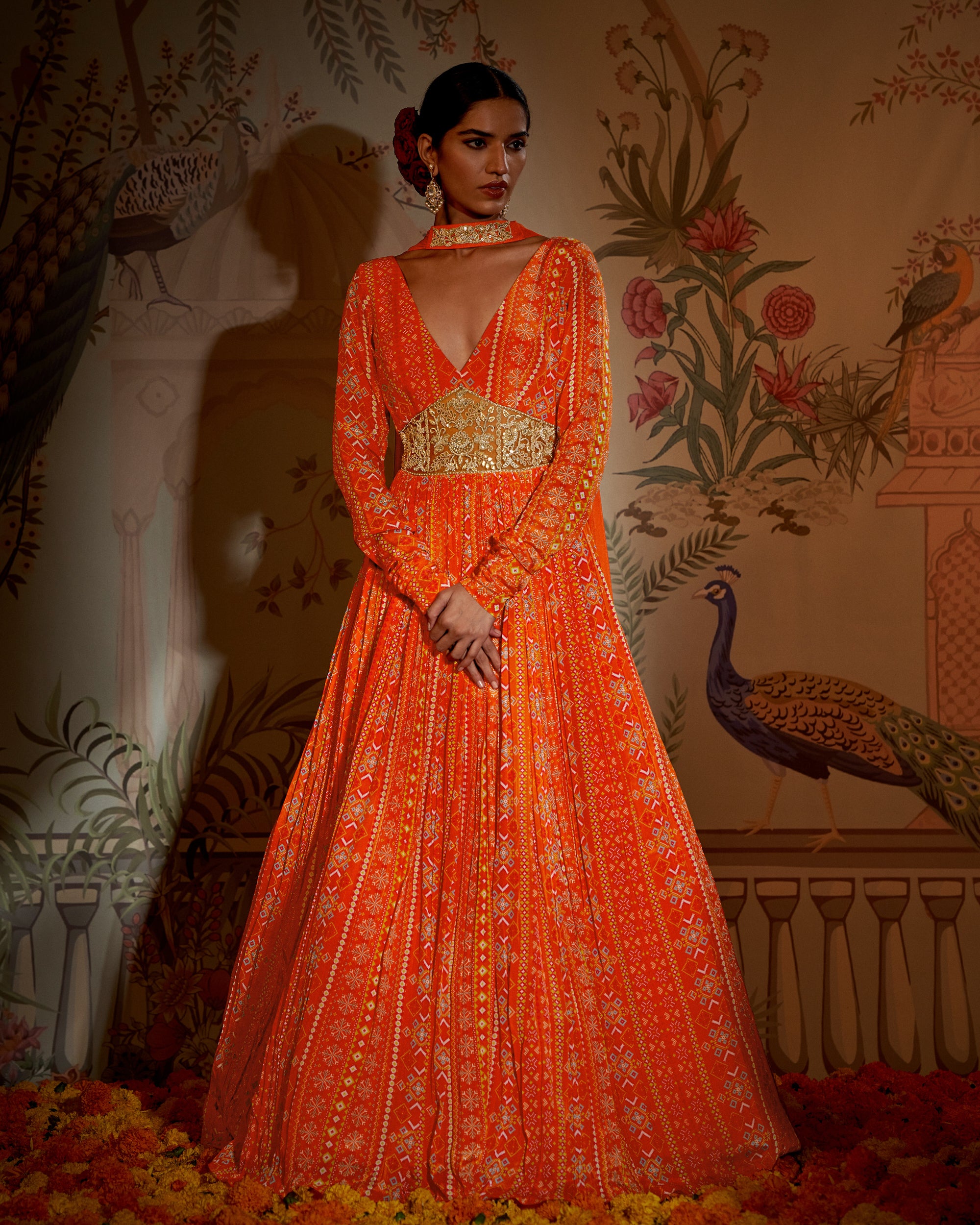 Featuring a zardosi embroidred tengerine Anarkali. Its is paired an organza dupatta.