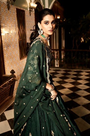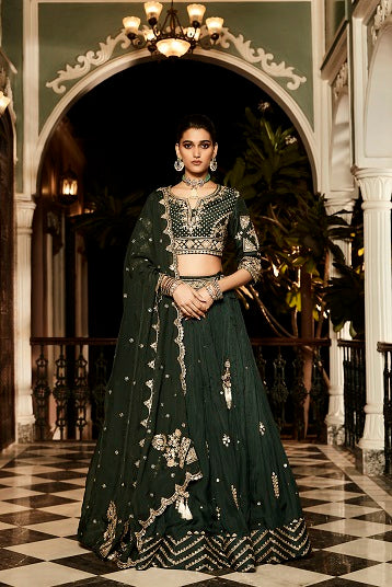 The nawabi green paheli lehenga