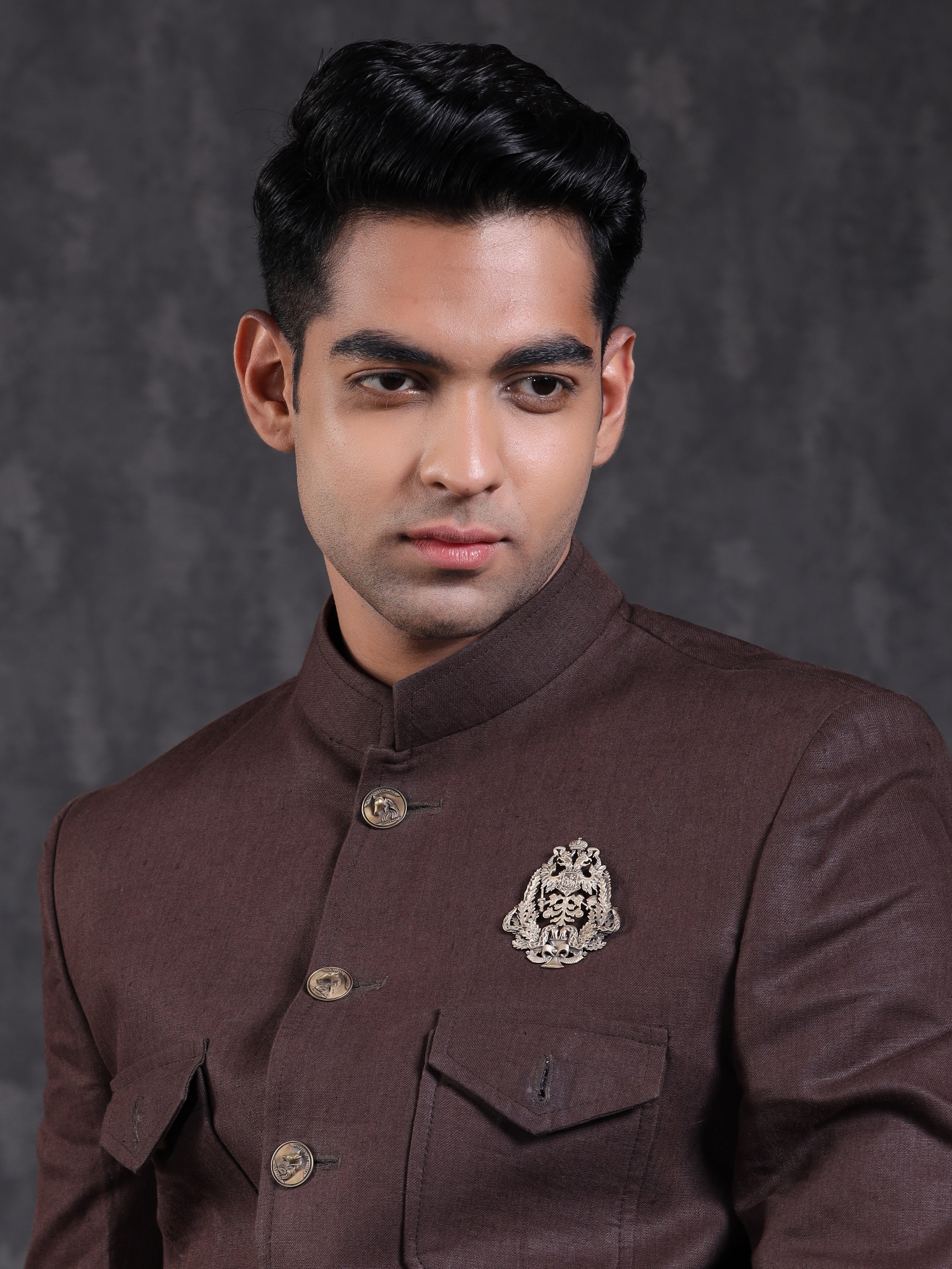 | This elegantly crafted Miltiades brooch in antique gold is made of brass metal. It is durable, lightweight and elegantly designed to manifest the unparalleled stratagem of Miltiades. Style it with a bandhgala, shirt or jackets at the wedding or casual outings to get a larger-than-life look. |