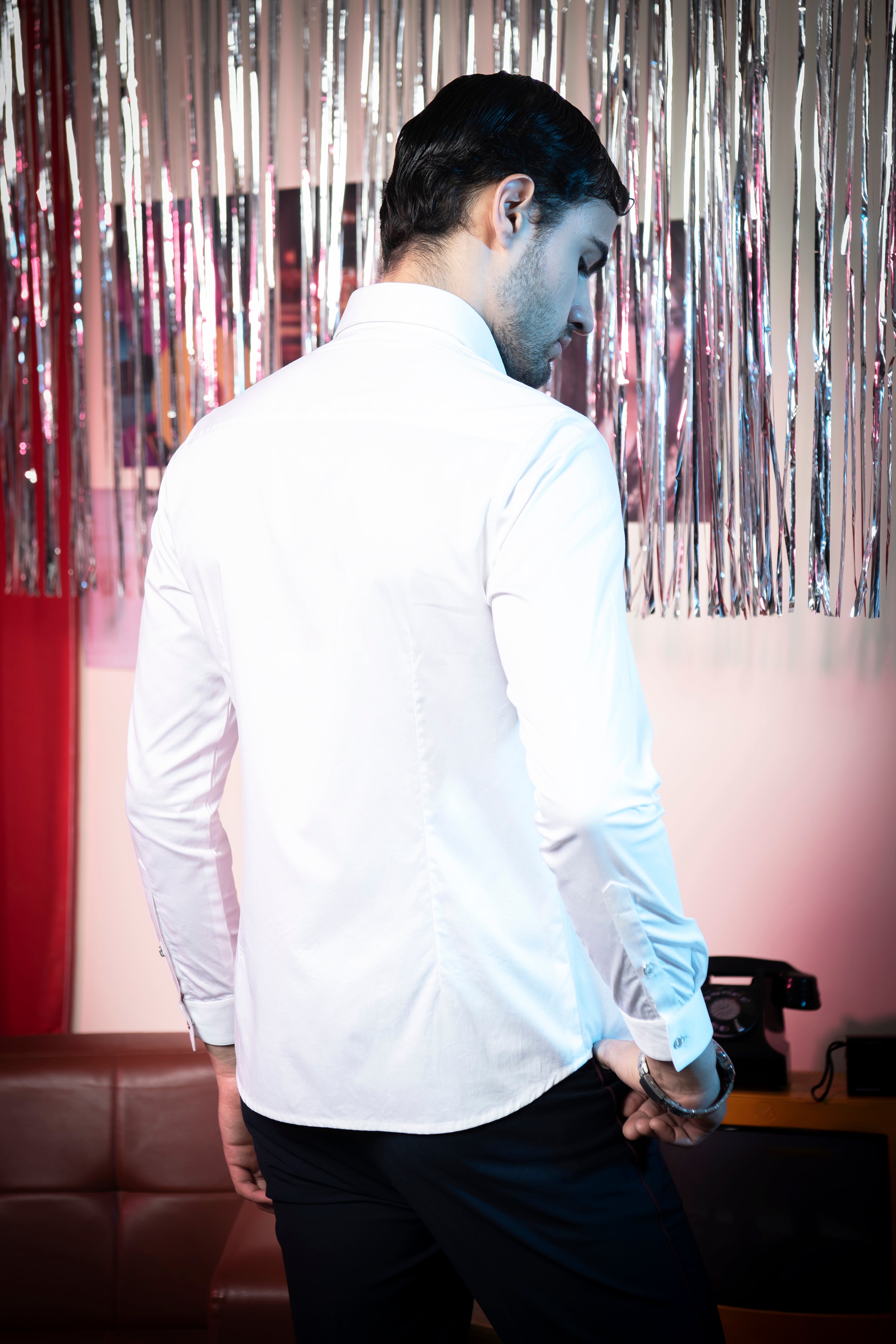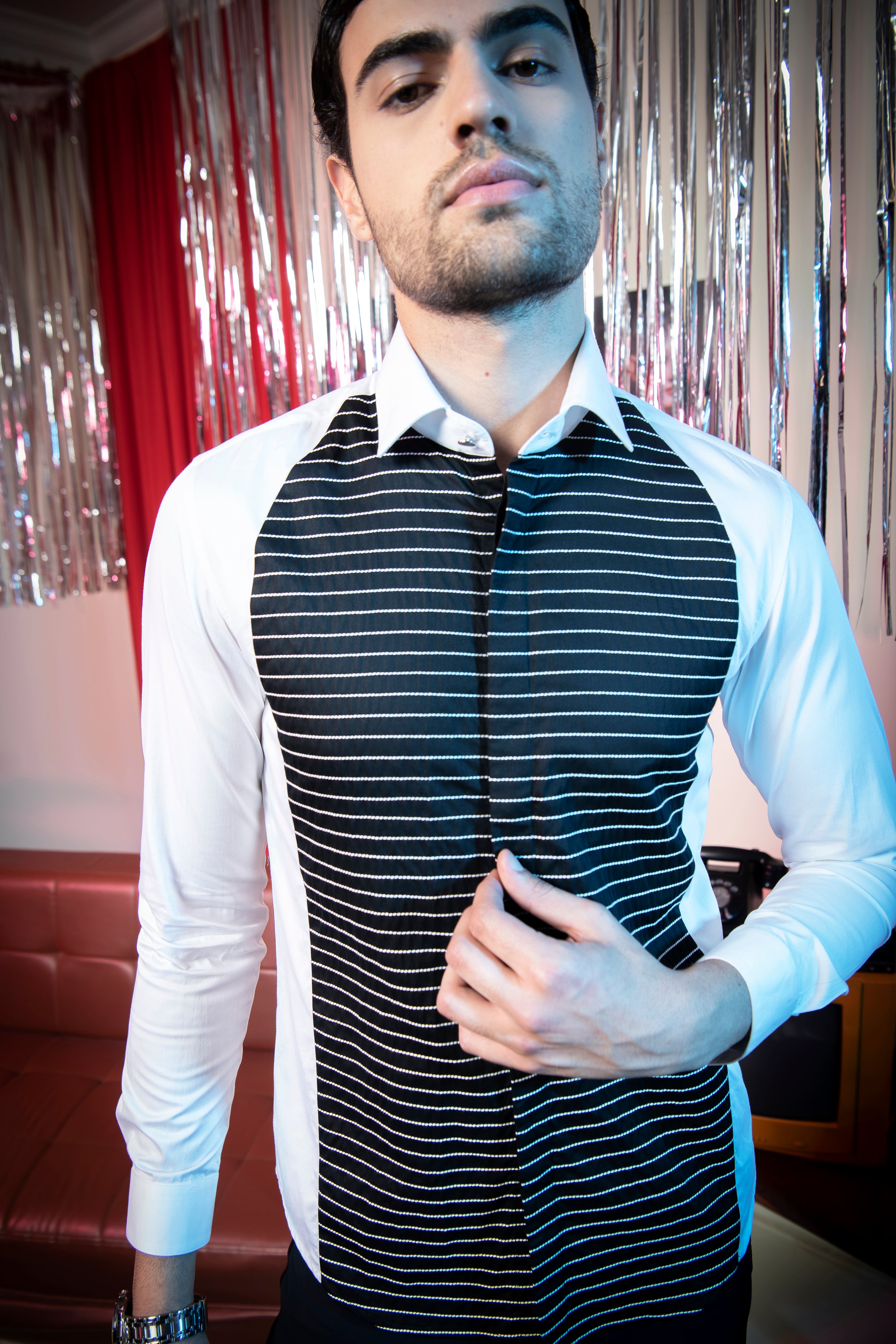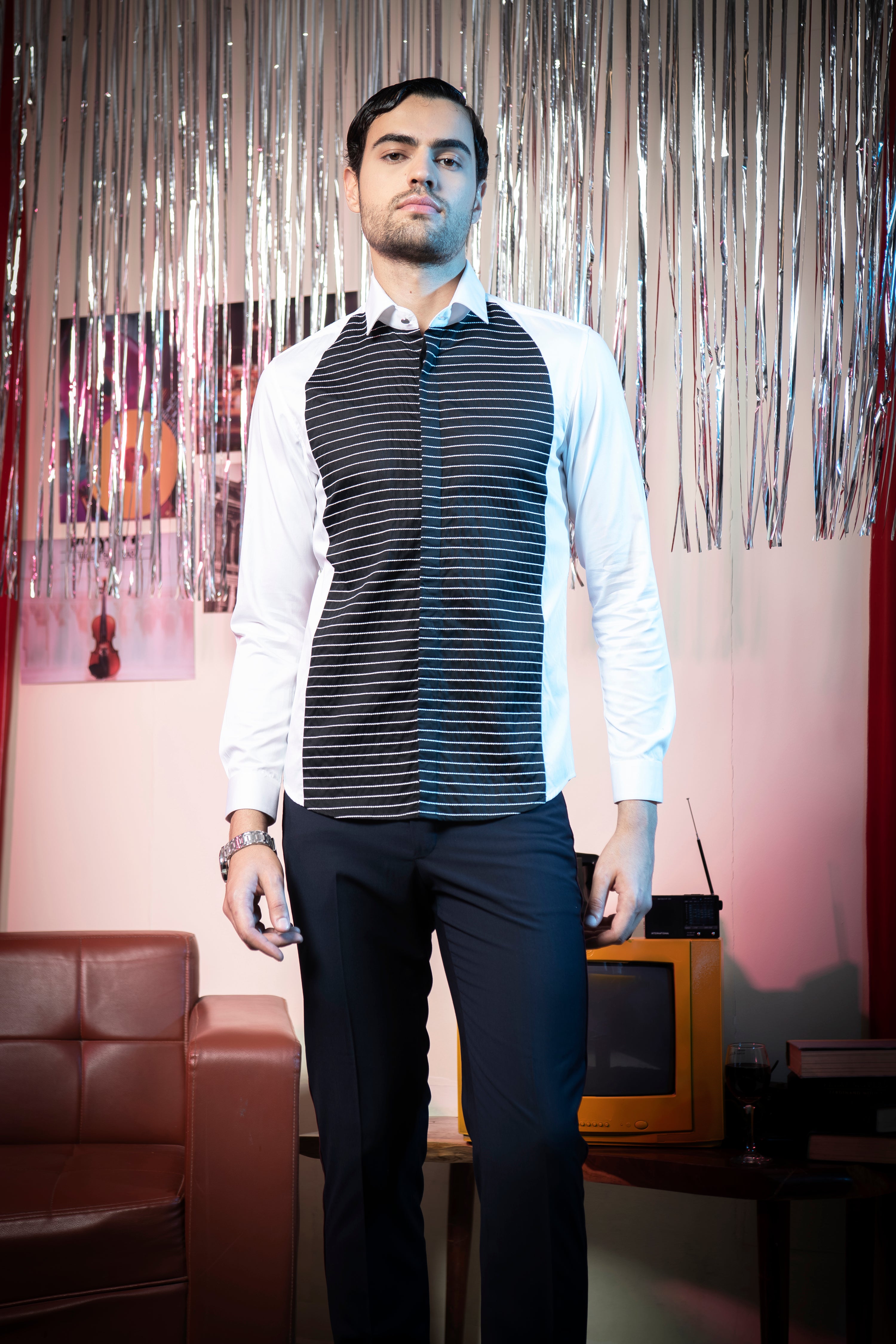Featuring a white and black striped shirt in cotton base with a concealed placket. Ideal for casual wear and occasions that embrace a carefree spirit.