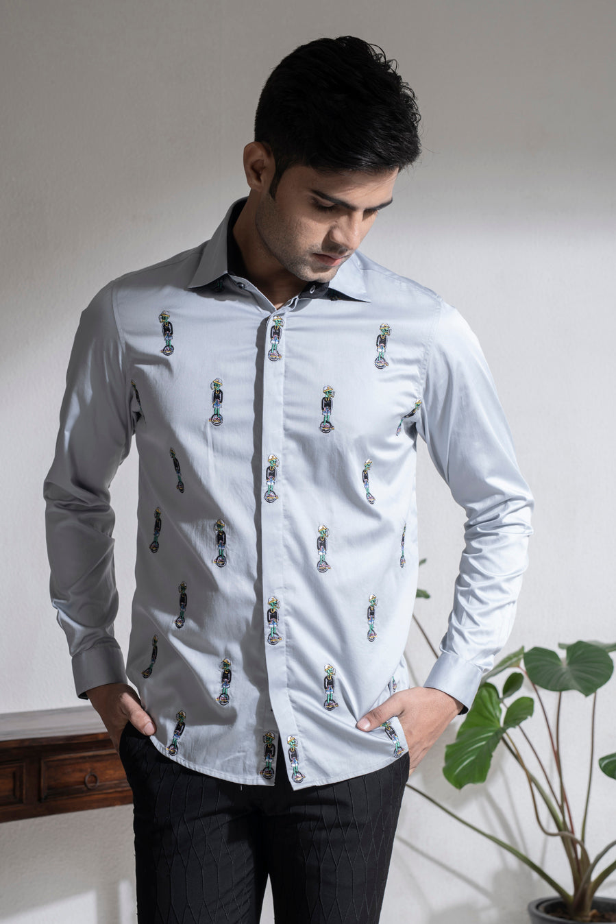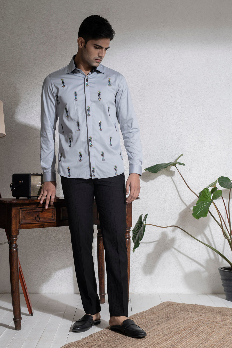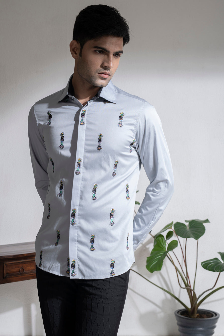 Featuring a white shirt in cotton base with embroidery and concealed placket. This contains one piece only.