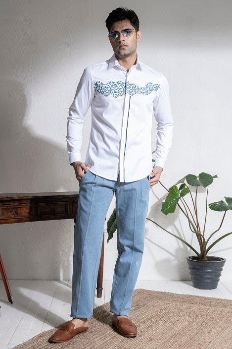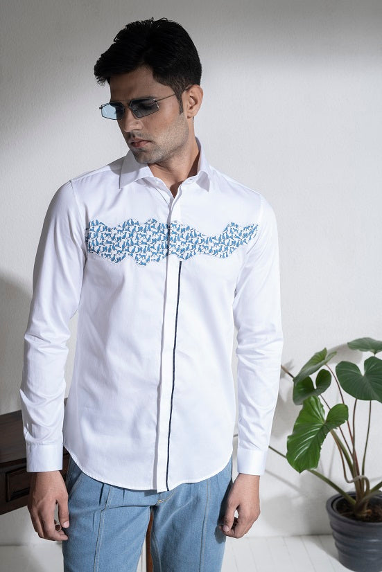 White cotton printed shirt